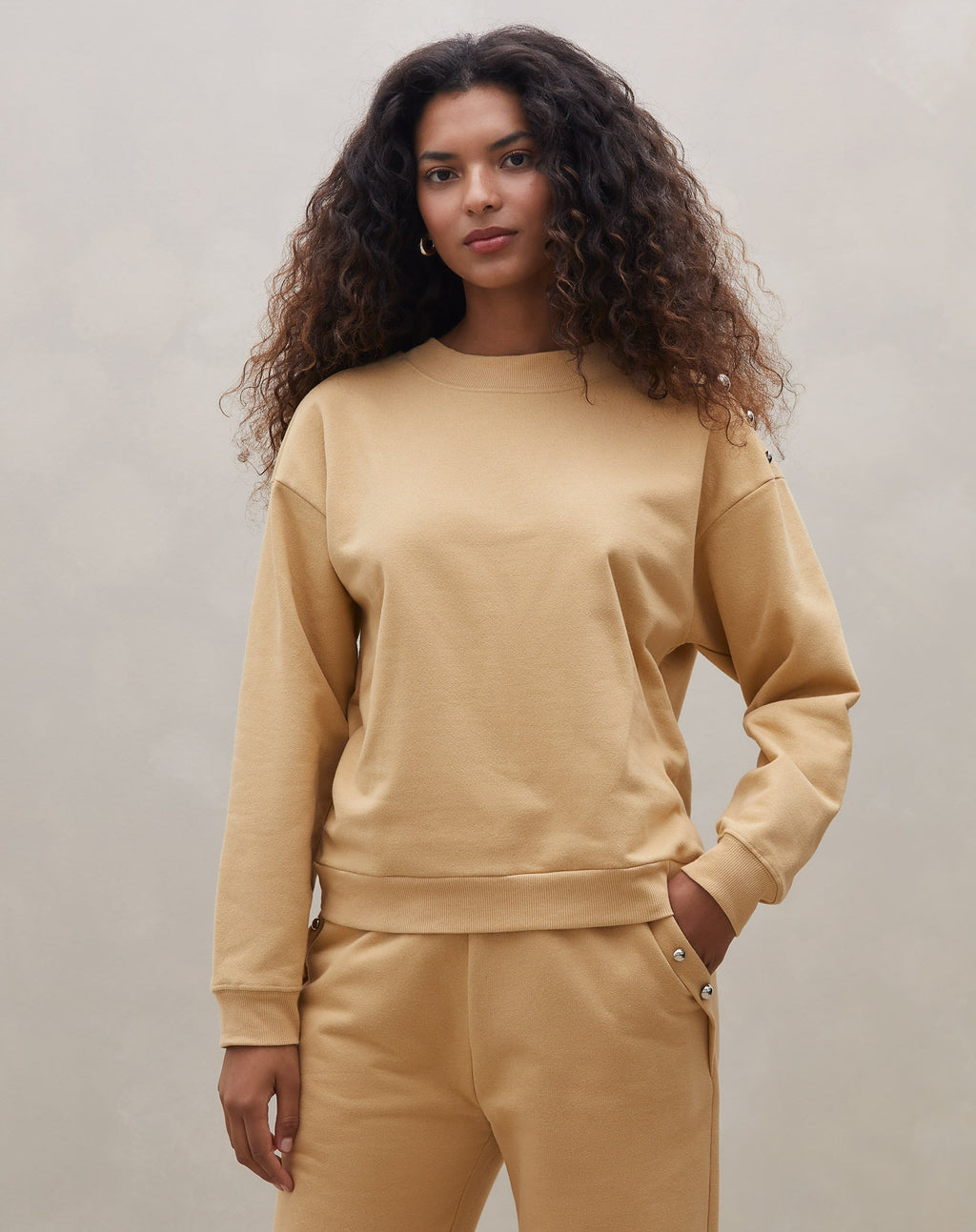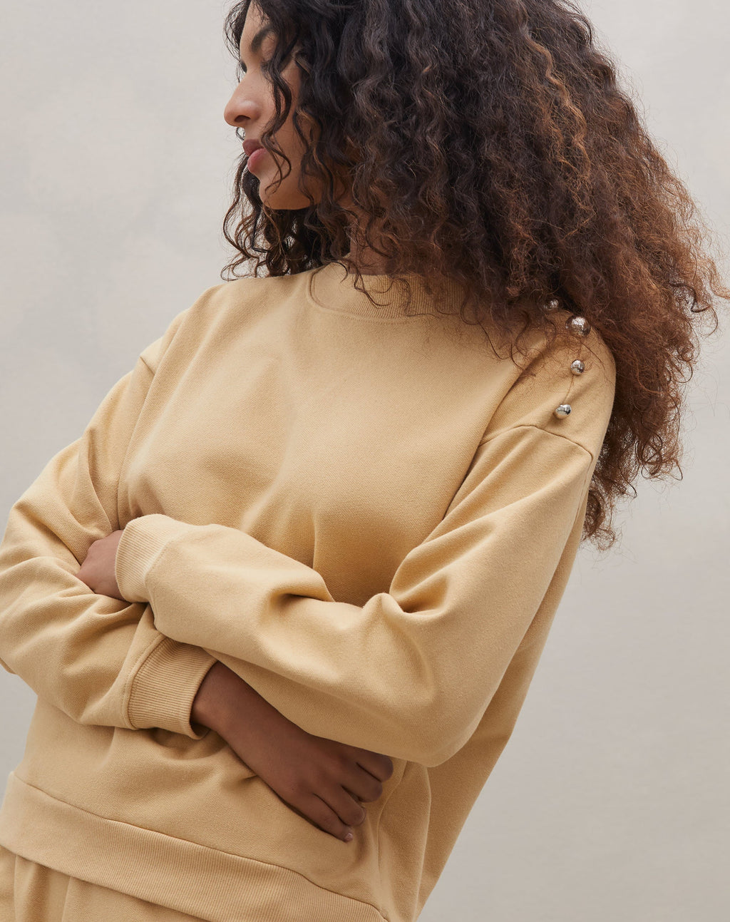 Blusa Manga Longa de Moletom FelpadoConforto e estilo se unem nesta blusa de moletom felpado, perfeita para dias frios. O design oversized e ombros caídos garantem um visual despojado e cool.