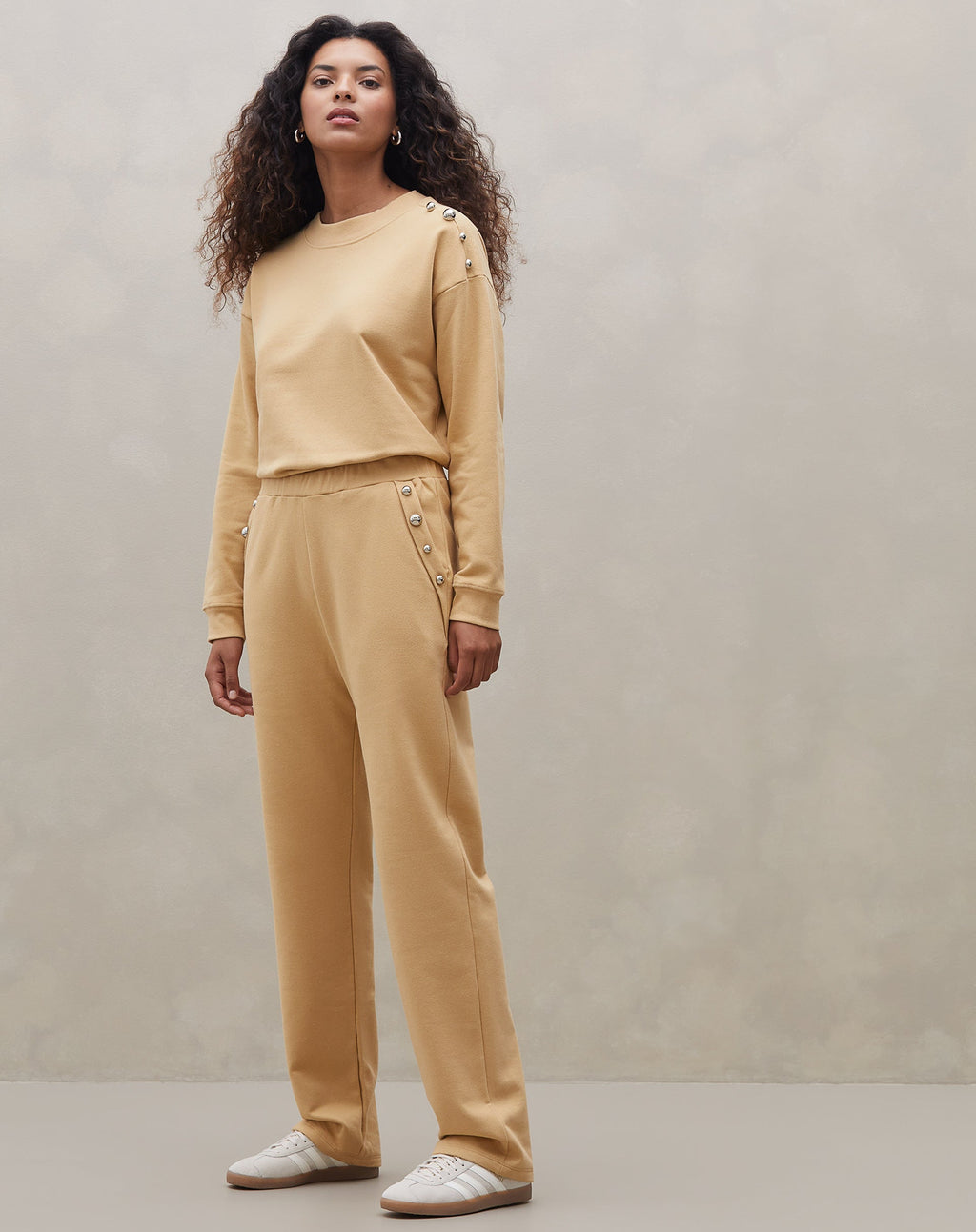 Modelo tem 1.77m de altura e veste o tamanho P / 36