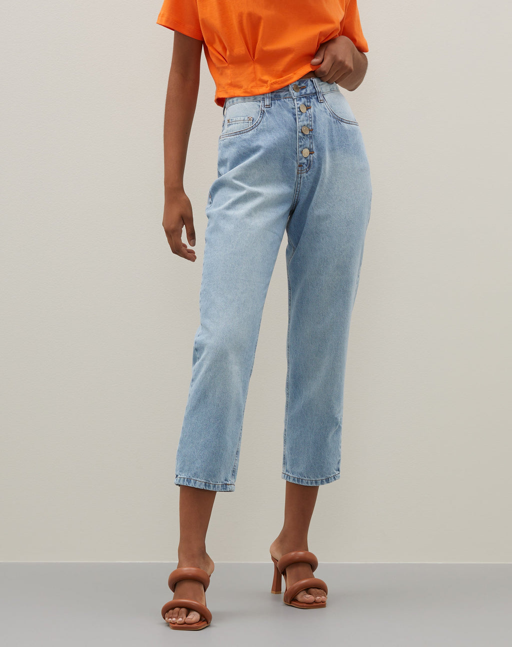 A Calça Jeans Slim Vista de Botões vai ficar ainda mais incrível no seu guarda-roupa. Essa peça tem silhueta slim, comprimento padrão, cintura alta e cós com fechamento.