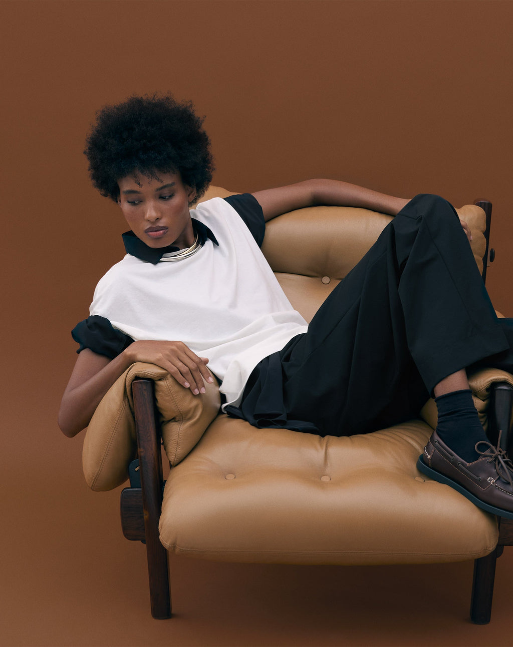 Modelo tem 1.8m de altura e veste o tamanho P / 38