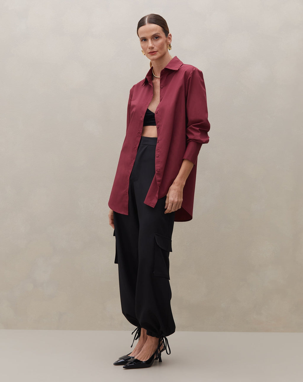 Uma peça versátil e atemporal, a Camisa Alongada com Barra Arredondada é o item perfeito para compor um look elevado e sofisticado. Com tecido de algodão plano e detalhes minimalistas, seu comprimento longo e manga longa trazem um toque de elegância casual.