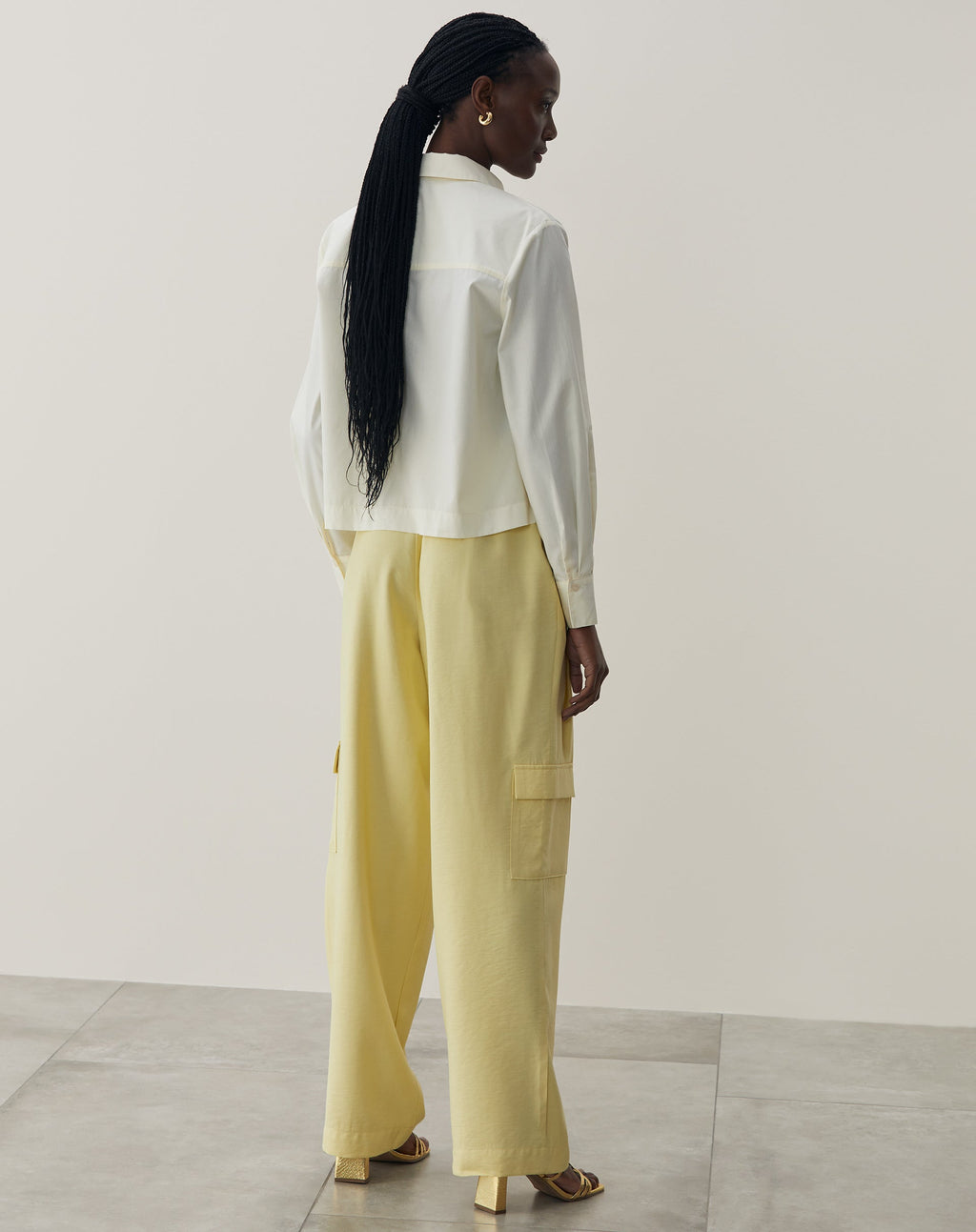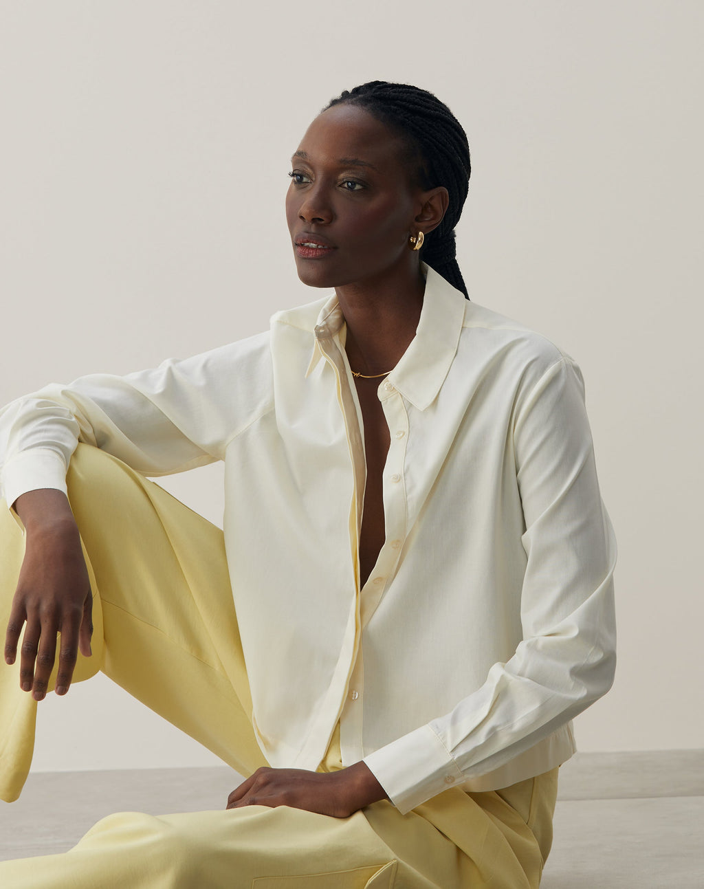 Camisa básica curta, item essencial para um guarda-roupa versátil. Com mangas longas e gola de camisa, perfeita para diversas ocasiões.