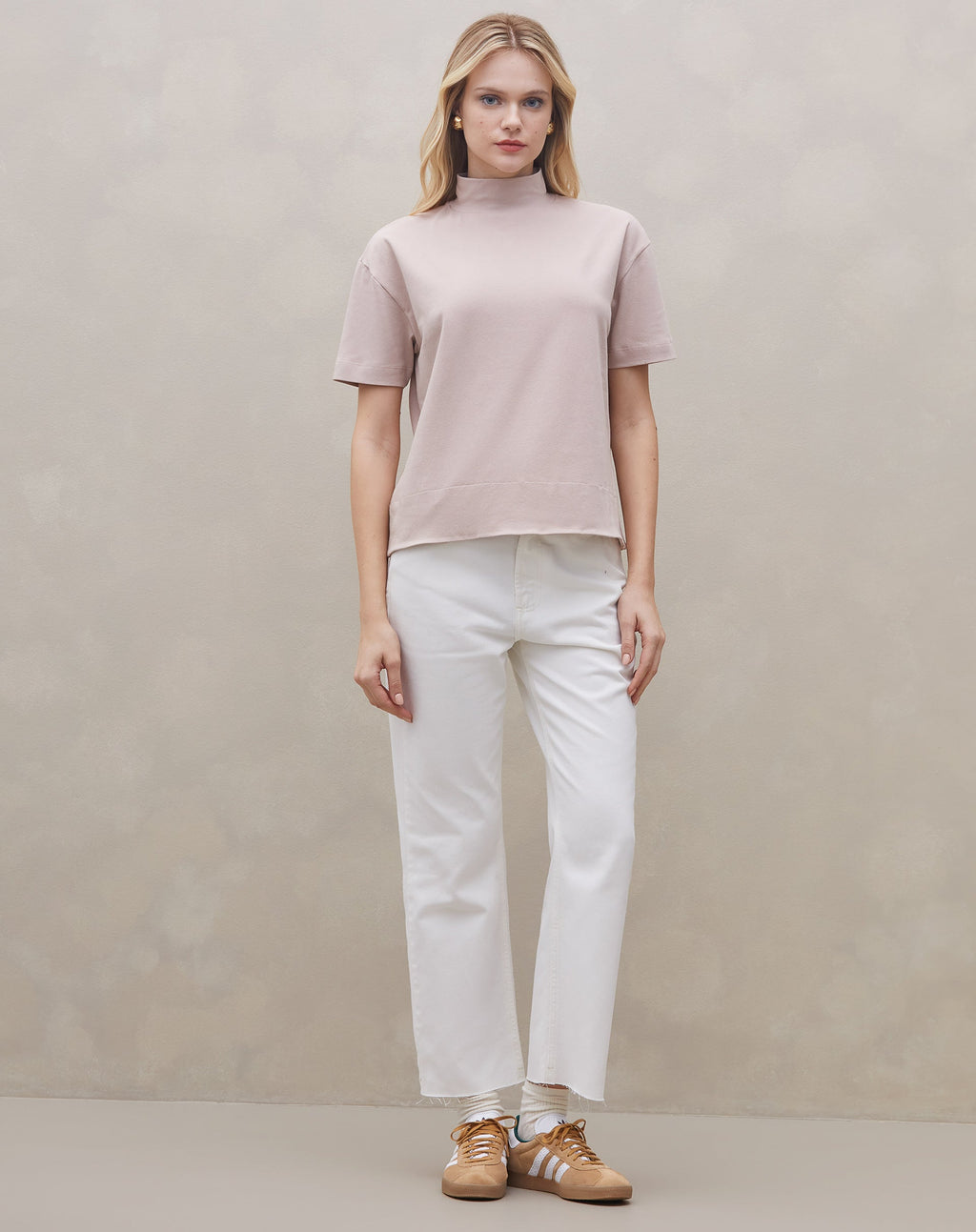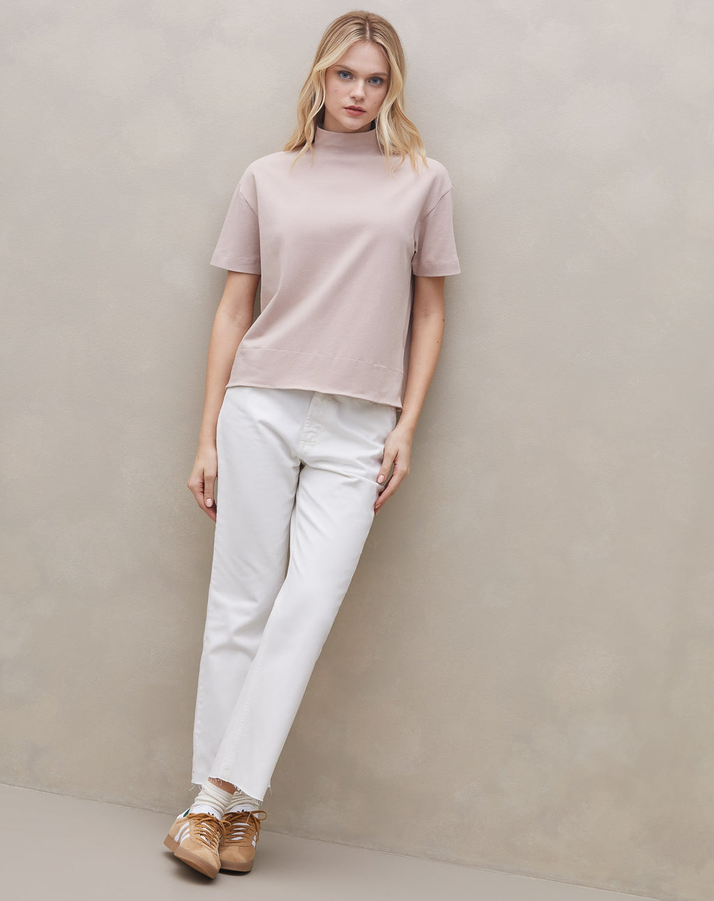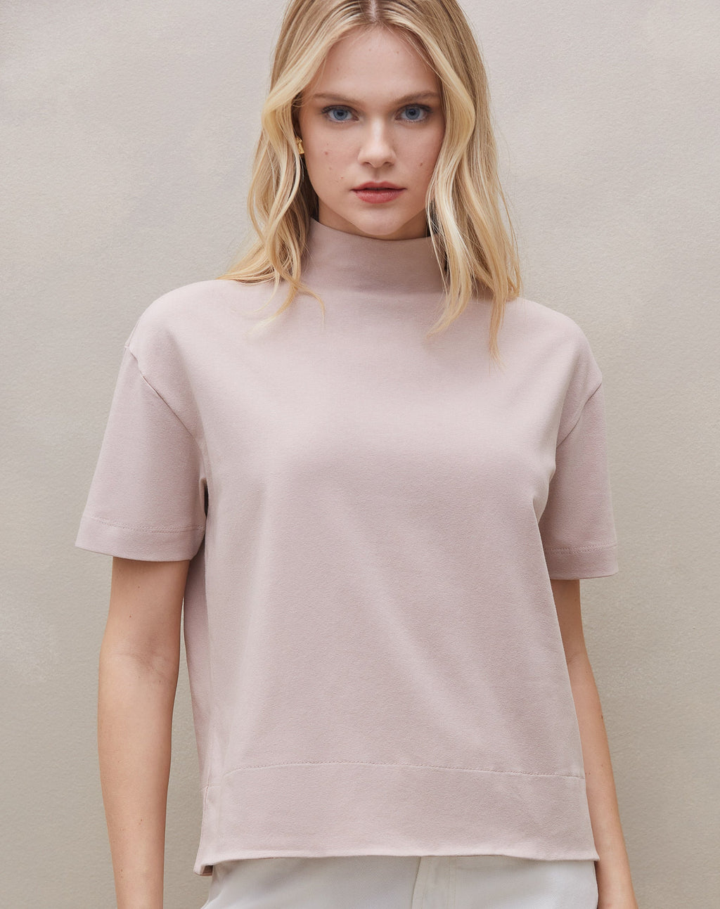 A camiseta gola alta com barra larga é um item versátil e confortável, perfeito para um look casual com um toque de estilo. Seu design minimalista e a gola alta proporcionam um visual moderno e descolado.