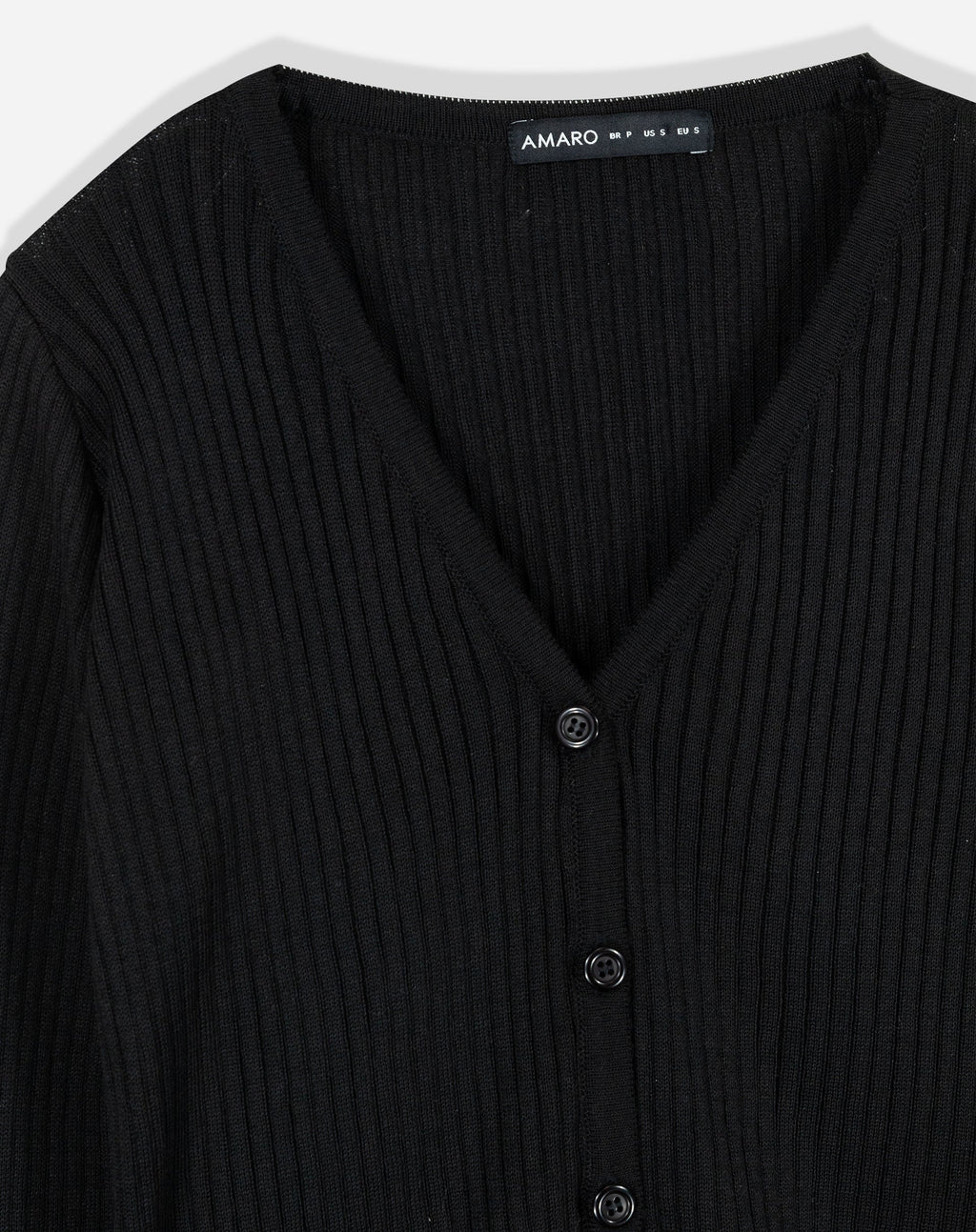 Cardigan curto de tricot canelado, perfeito para um look casual elegante. Seu design clássico e confortável é ideal para diversas ocasiões, garantindo estilo e versatilidade.