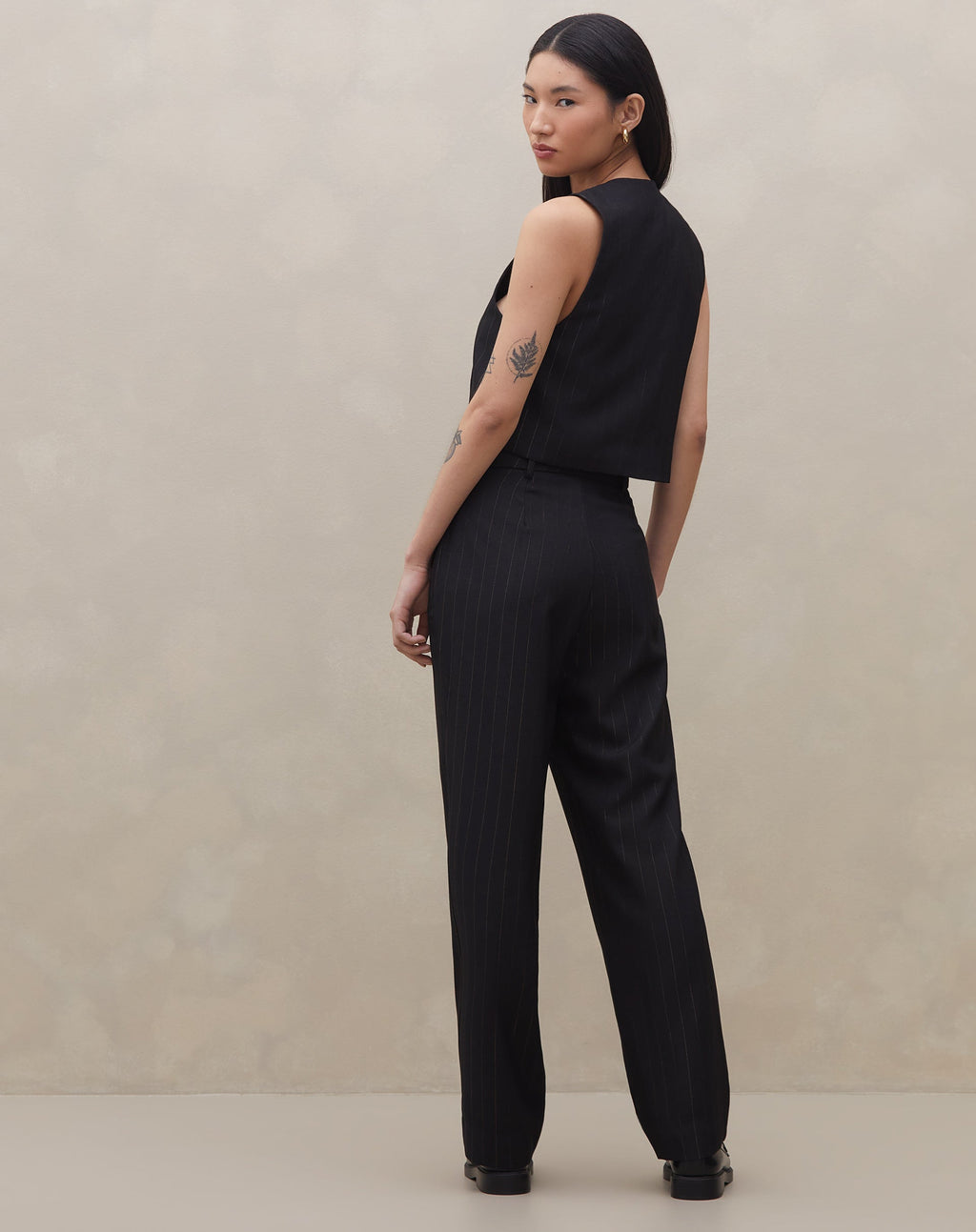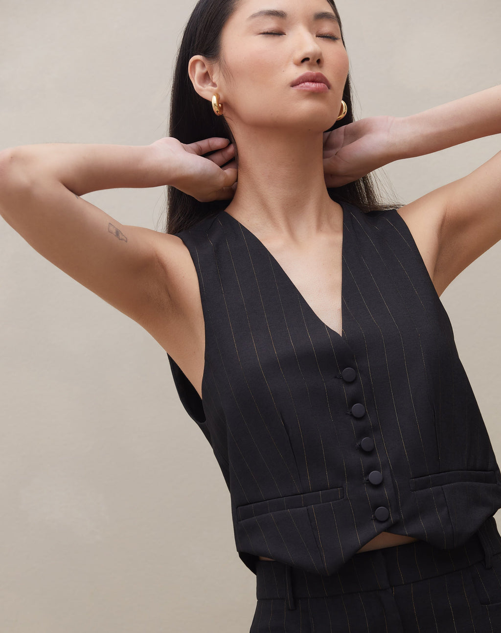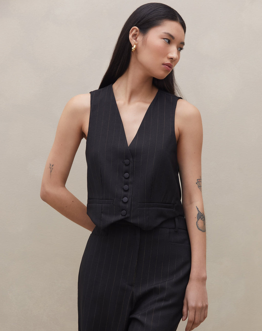 Colete de alfaiataria reto, peça-chave para um look elegante e moderno. Perfeito para compor um visual sofisticado e versátil, ideal para reuniões de negócios ou eventos sociais.