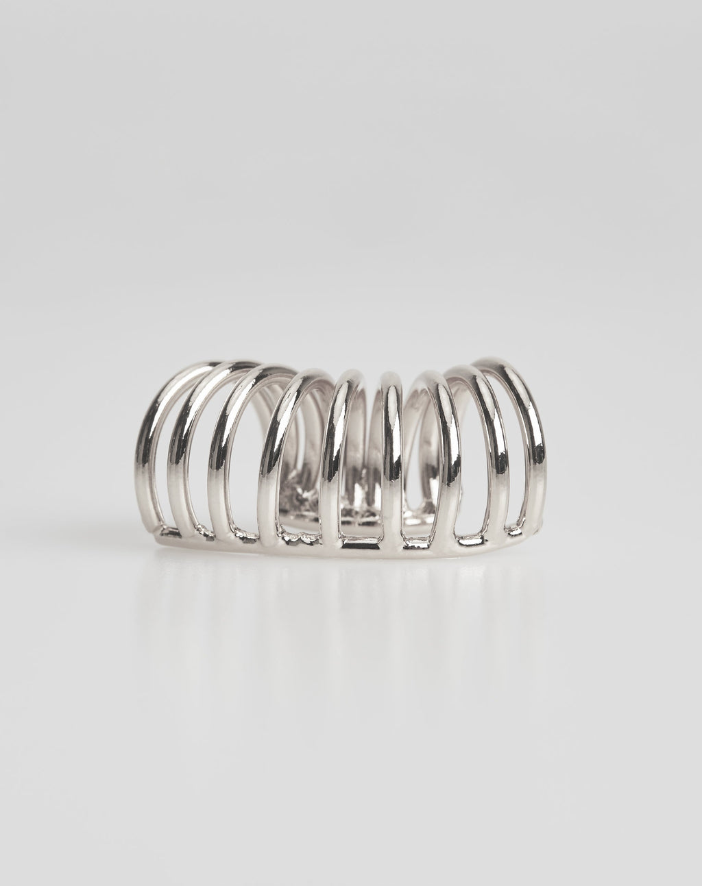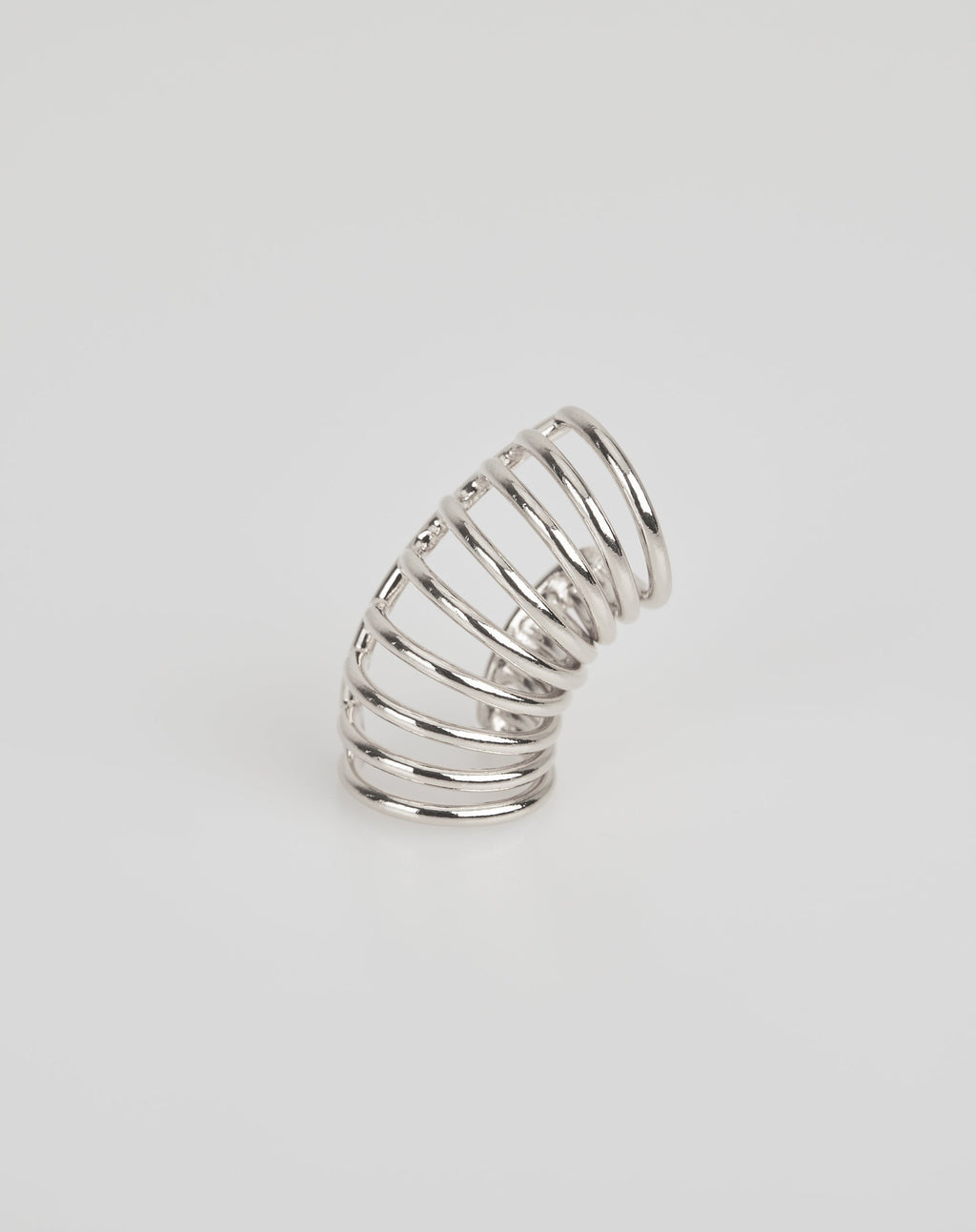 Ear Cuff Folheado Largo Multi Camadas - Prata