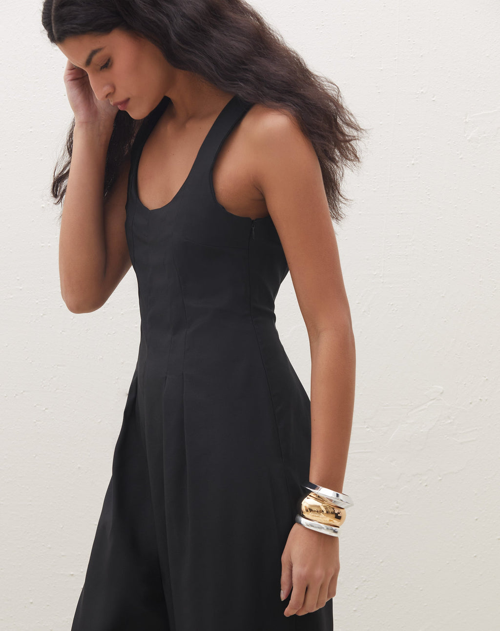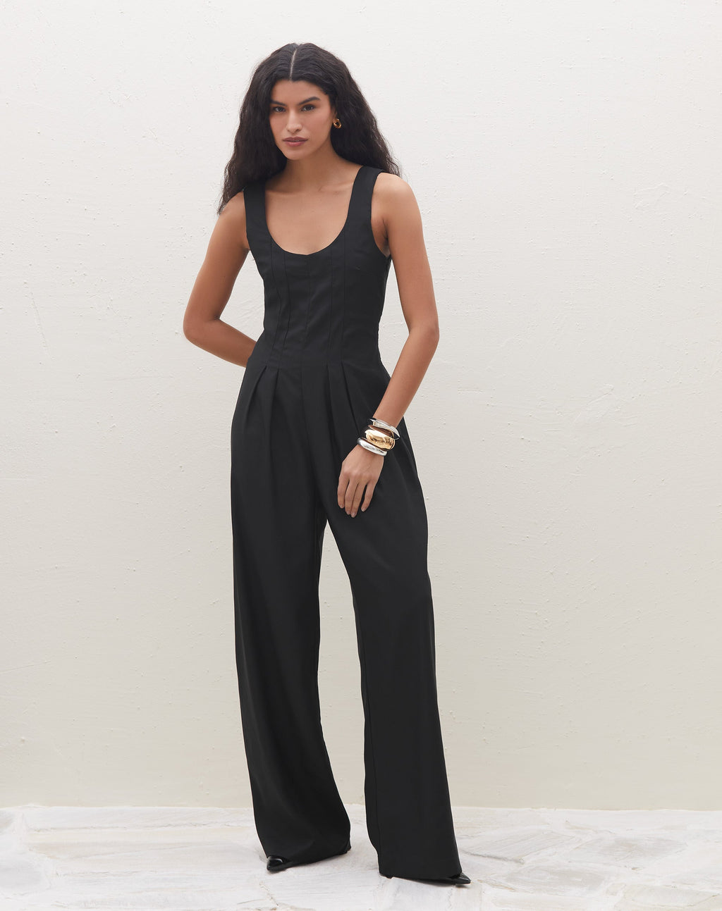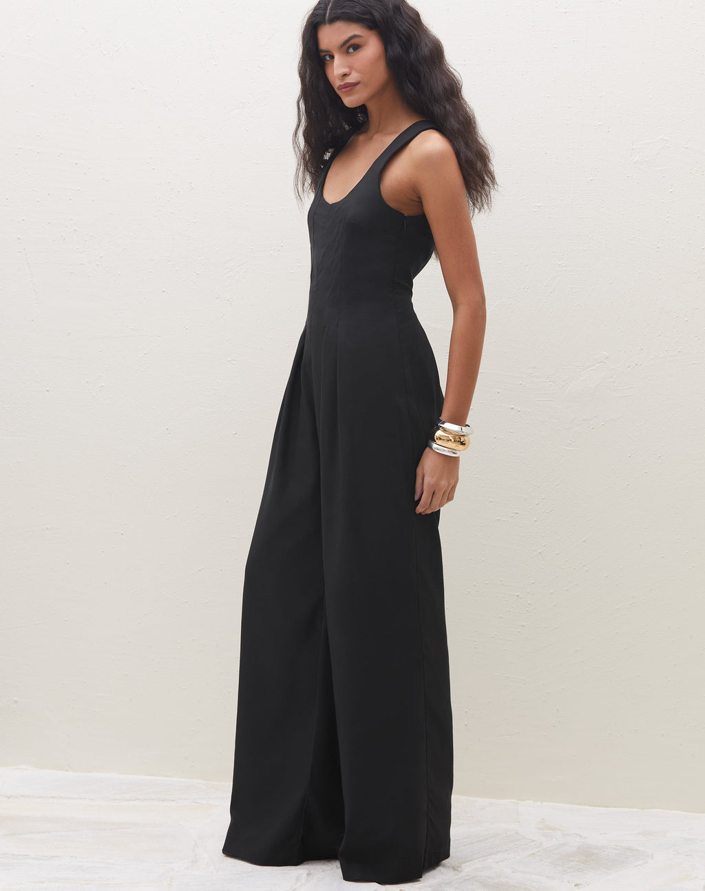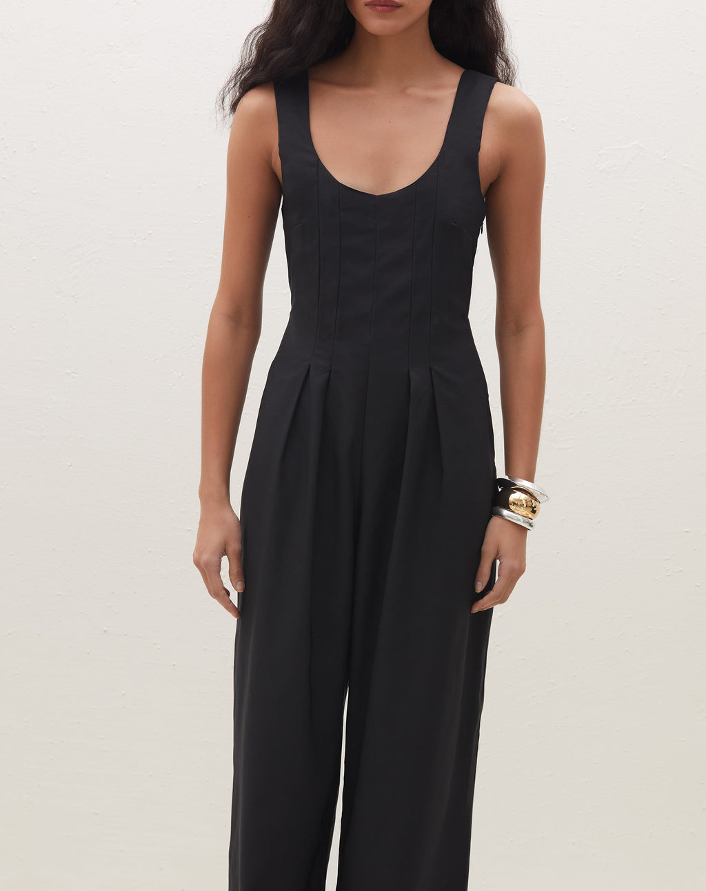 Destaque-se com elegância neste macacão com pregas. Perfeito para um evento casual ou uma noite especial, sua silhueta acinturada e pantalona/wide leg trazem um toque de sofisticação ao seu look.