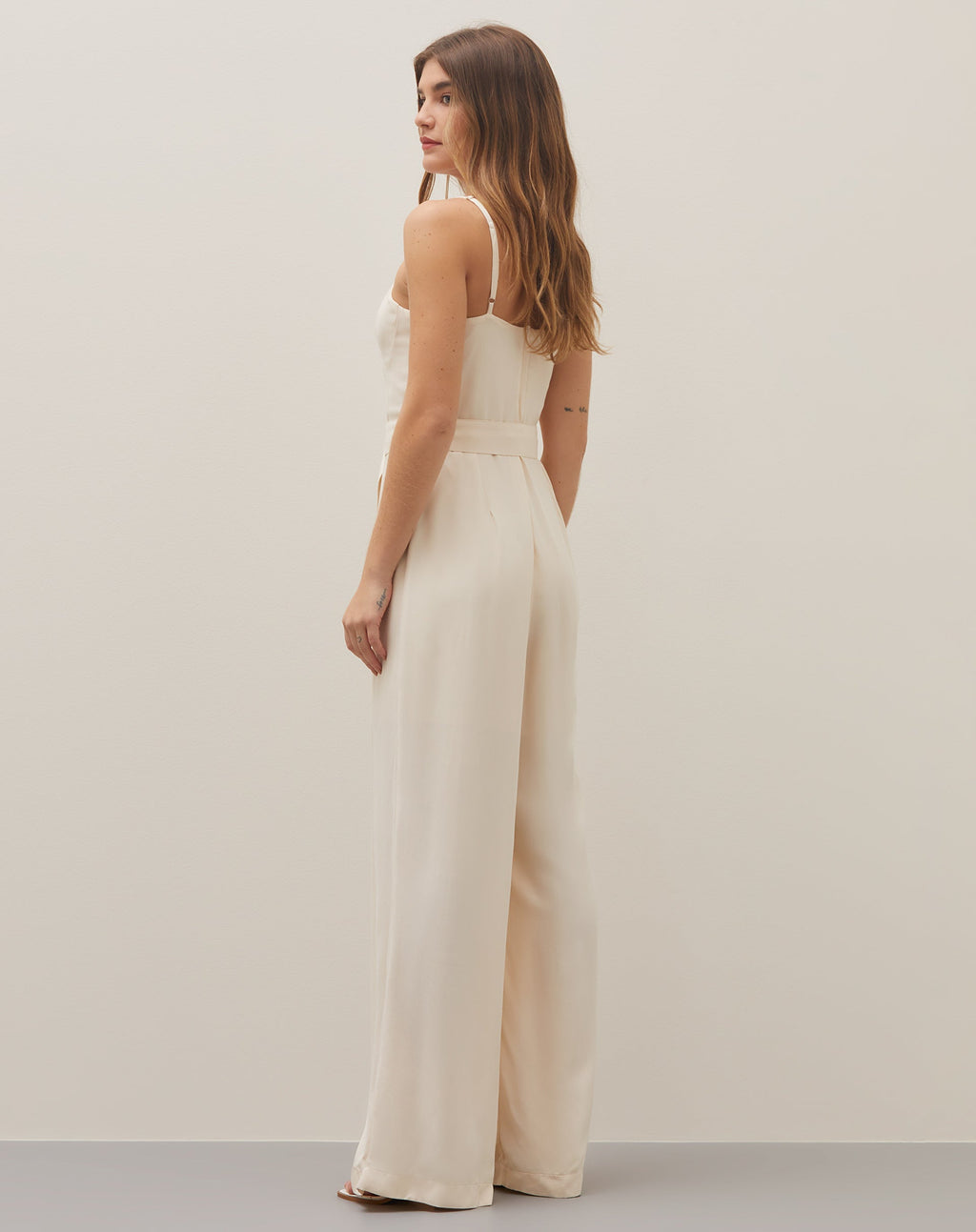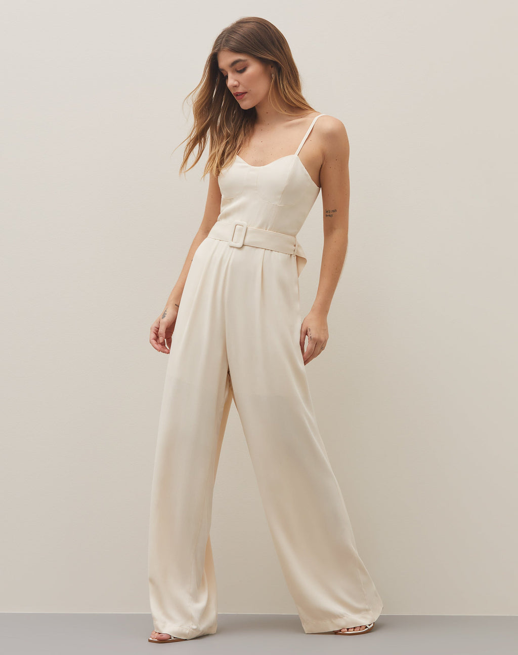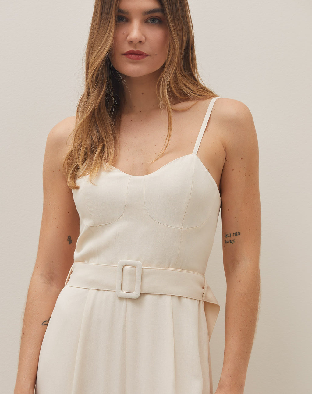 Macacão de alcinha com faixa, perfeito para eventos arrumados ou para o trabalho. O design clássico e elegante destaca-se pelo decote coração na frente e decote reto nas costas, garantindo um look sofisticado e versátil.