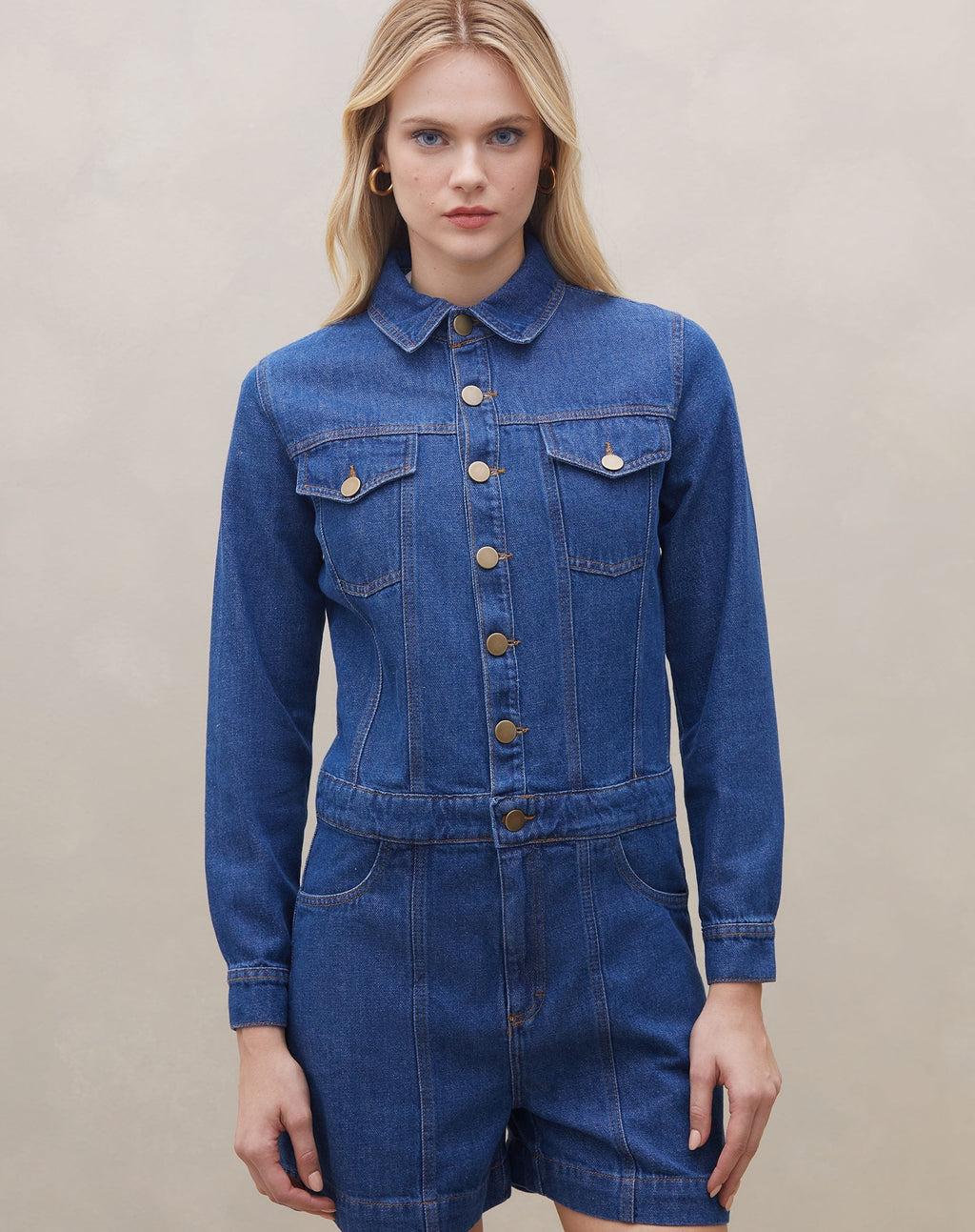 Macaquinho Manga Longa Pesponto Contrastante, perfeito para um look casual urbano. Destaque para o pesponto contrastante que adiciona um toque moderno e estiloso à peça.