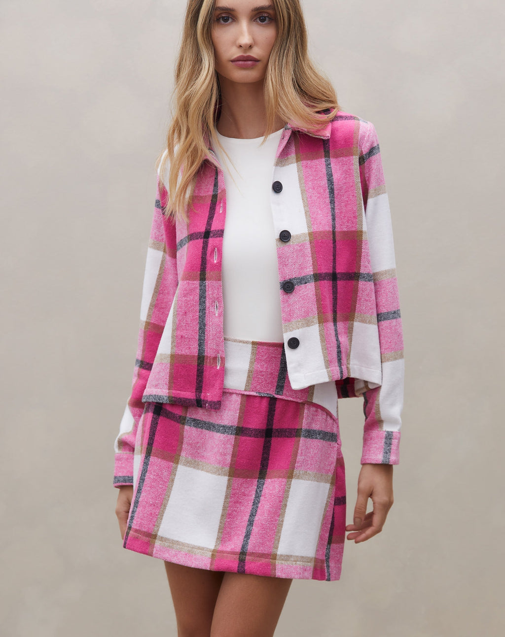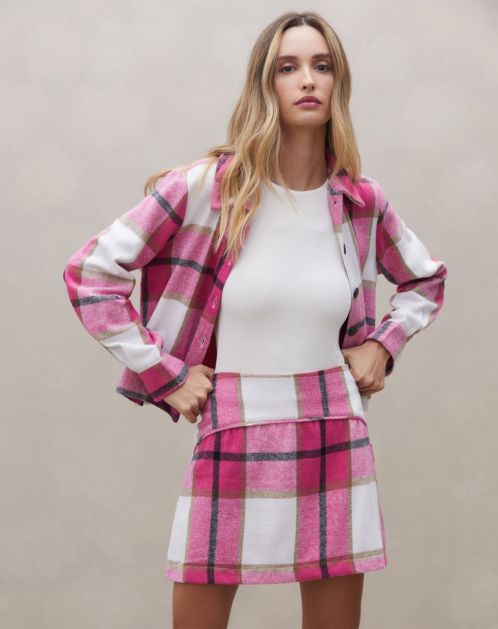 Mini Saia com Recortes Alfaiataria Xadrez - Rosa