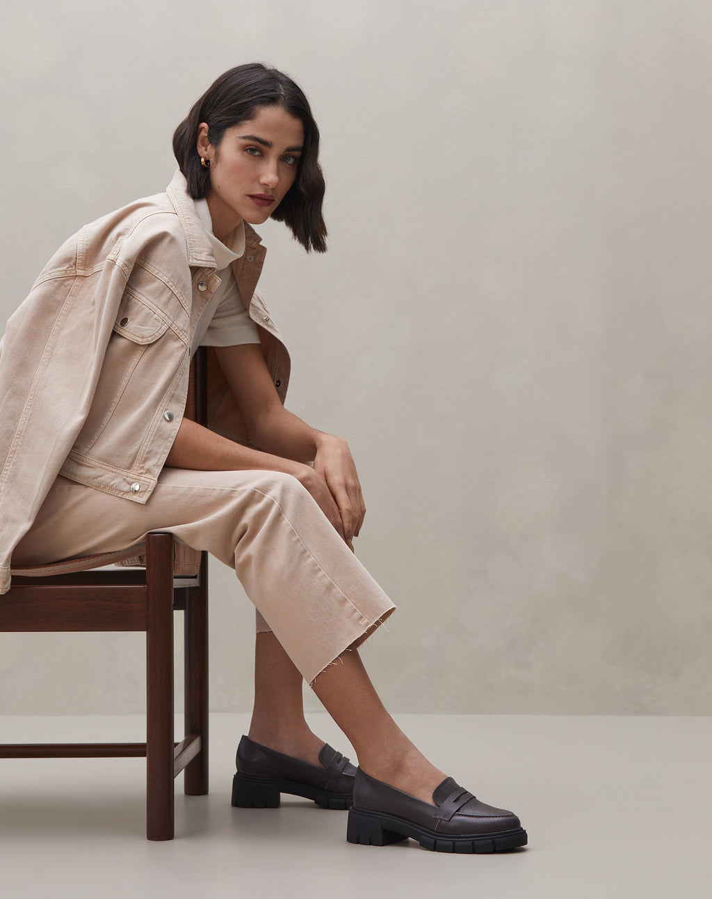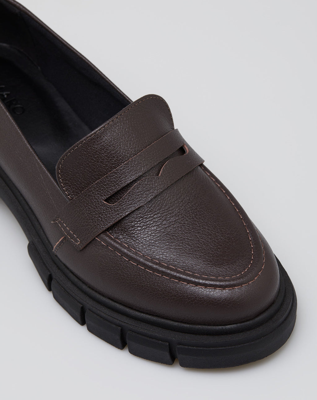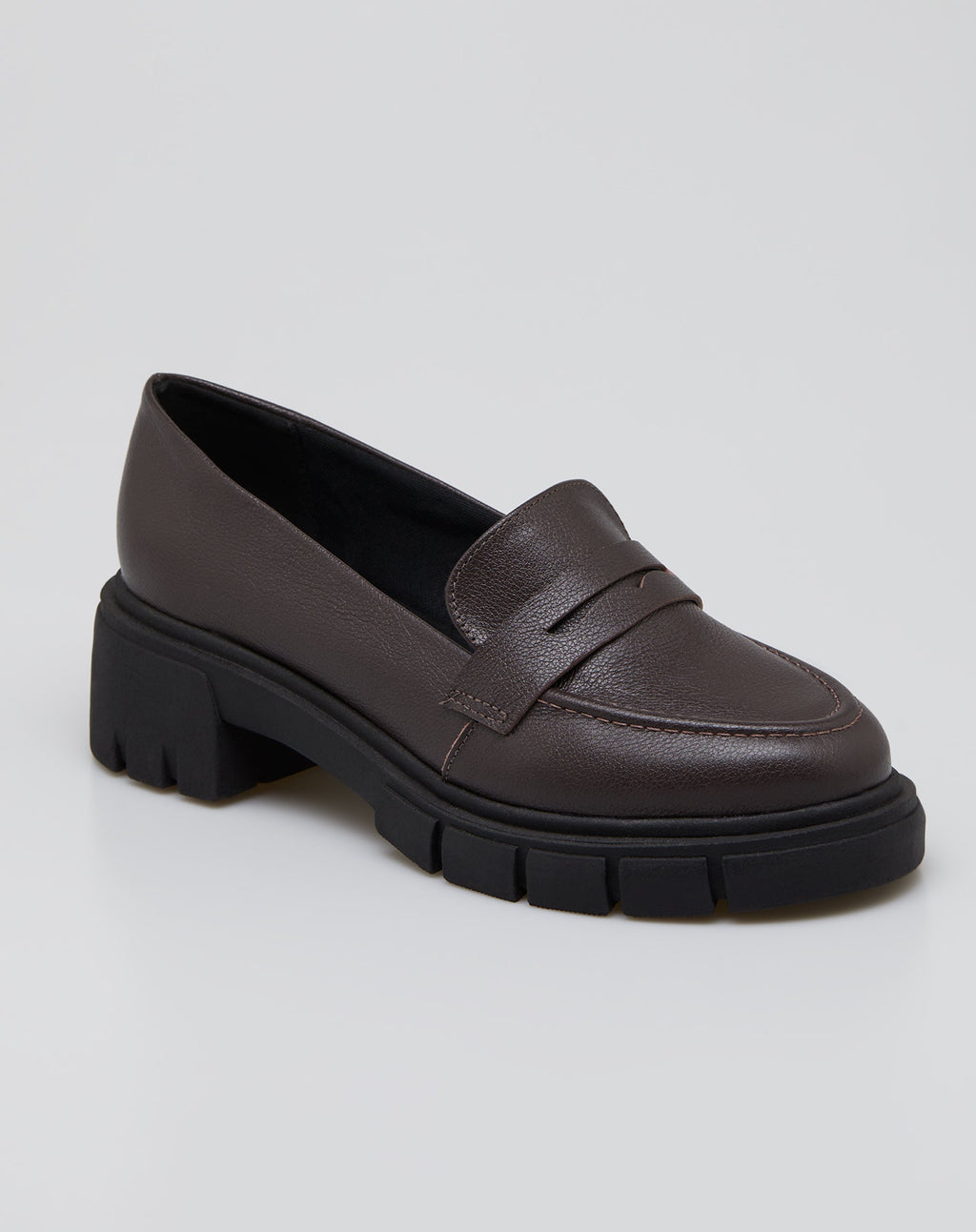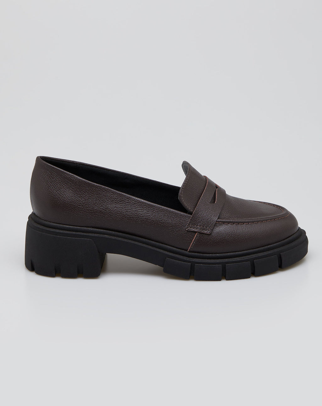 Mocassim de couro com sola tratorada, perfeito para um look casual-chic. Versátil e descolado, este item é um must-have para o seu closet.