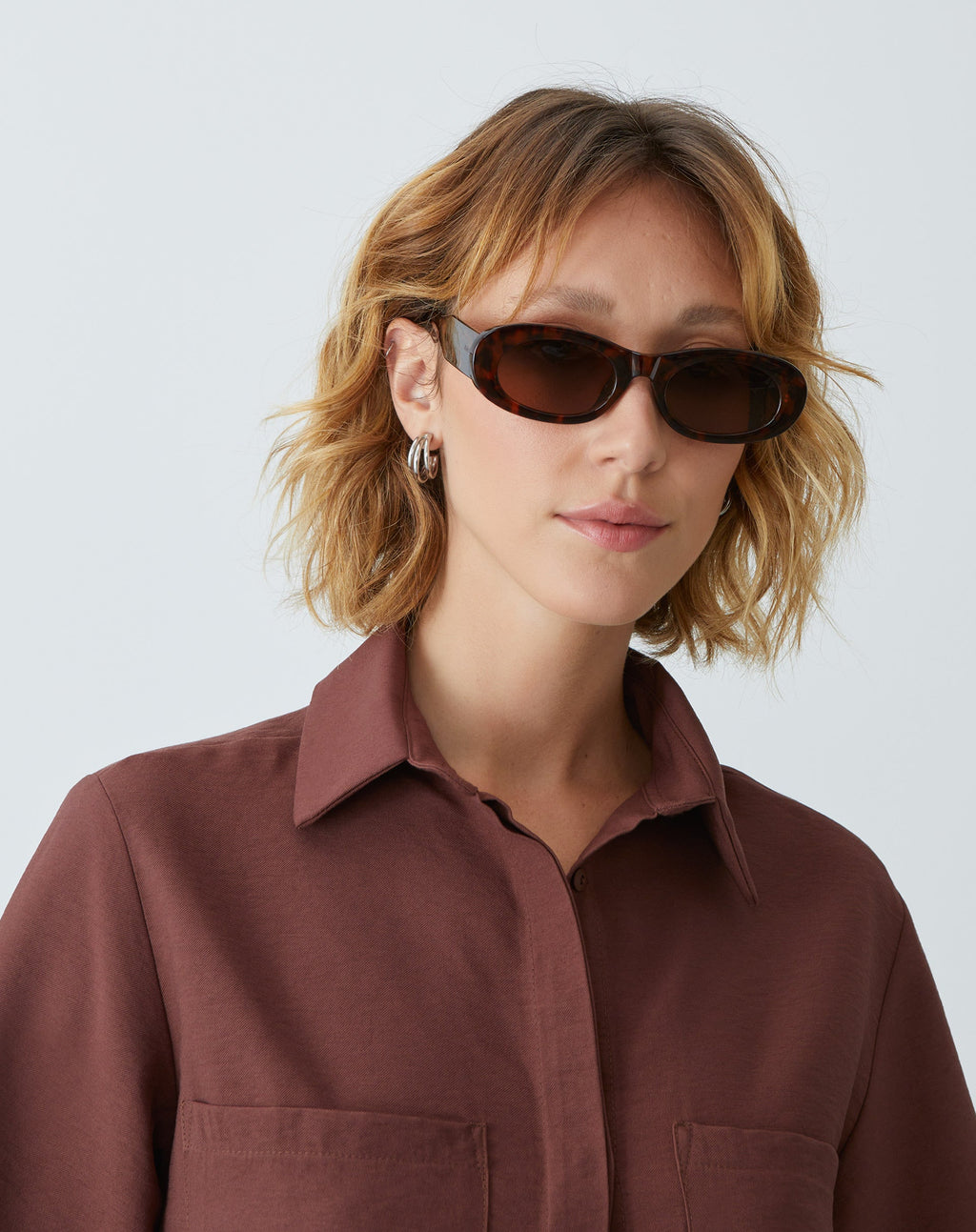 Óculos de sol oval retrô em acetato, perfeito para um look casual chic. Adicione um toque vintage e sofisticado ao seu visual com esse acessório versátil e atemporal.