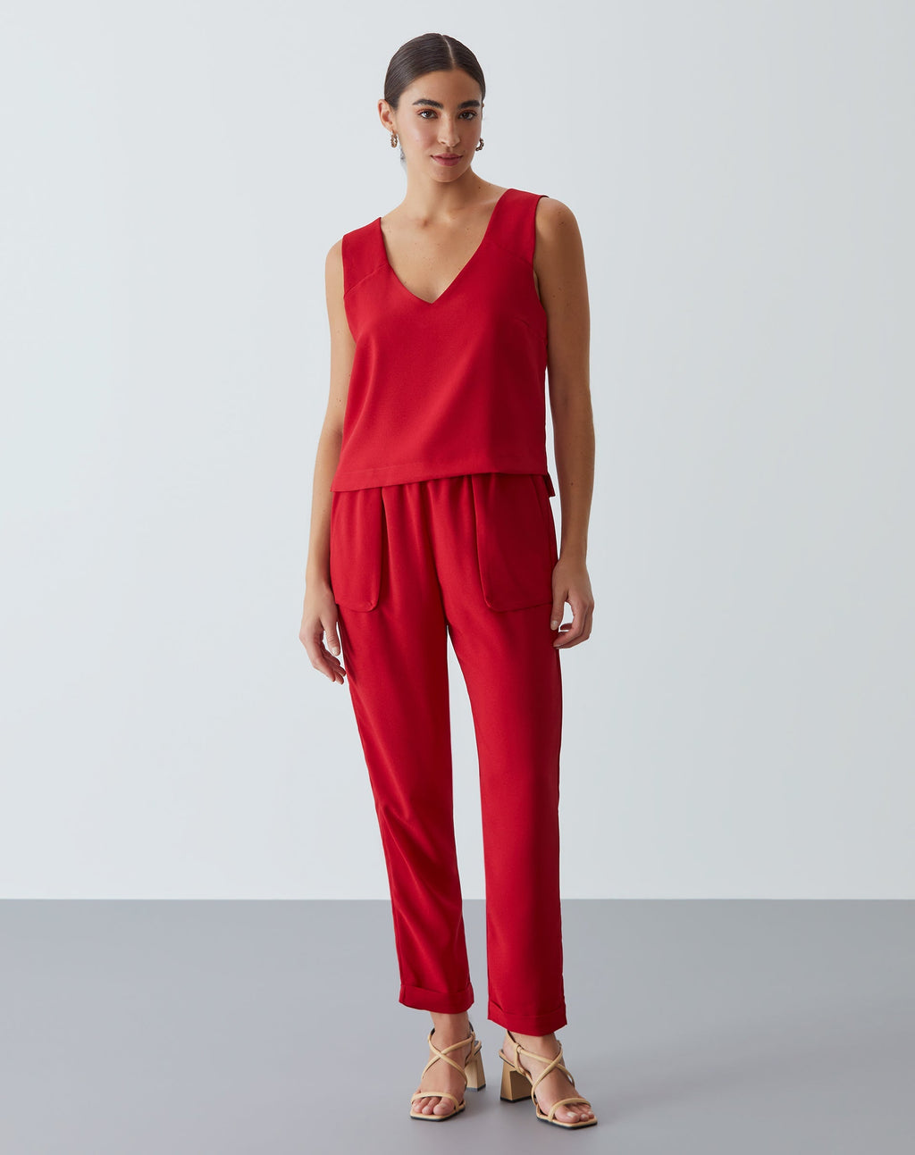 Detalhes da Peça: - Silhueta Reta  - Comprimento: Curto - Regata - Decote V  - Decote V nas Costas - Sem Forro