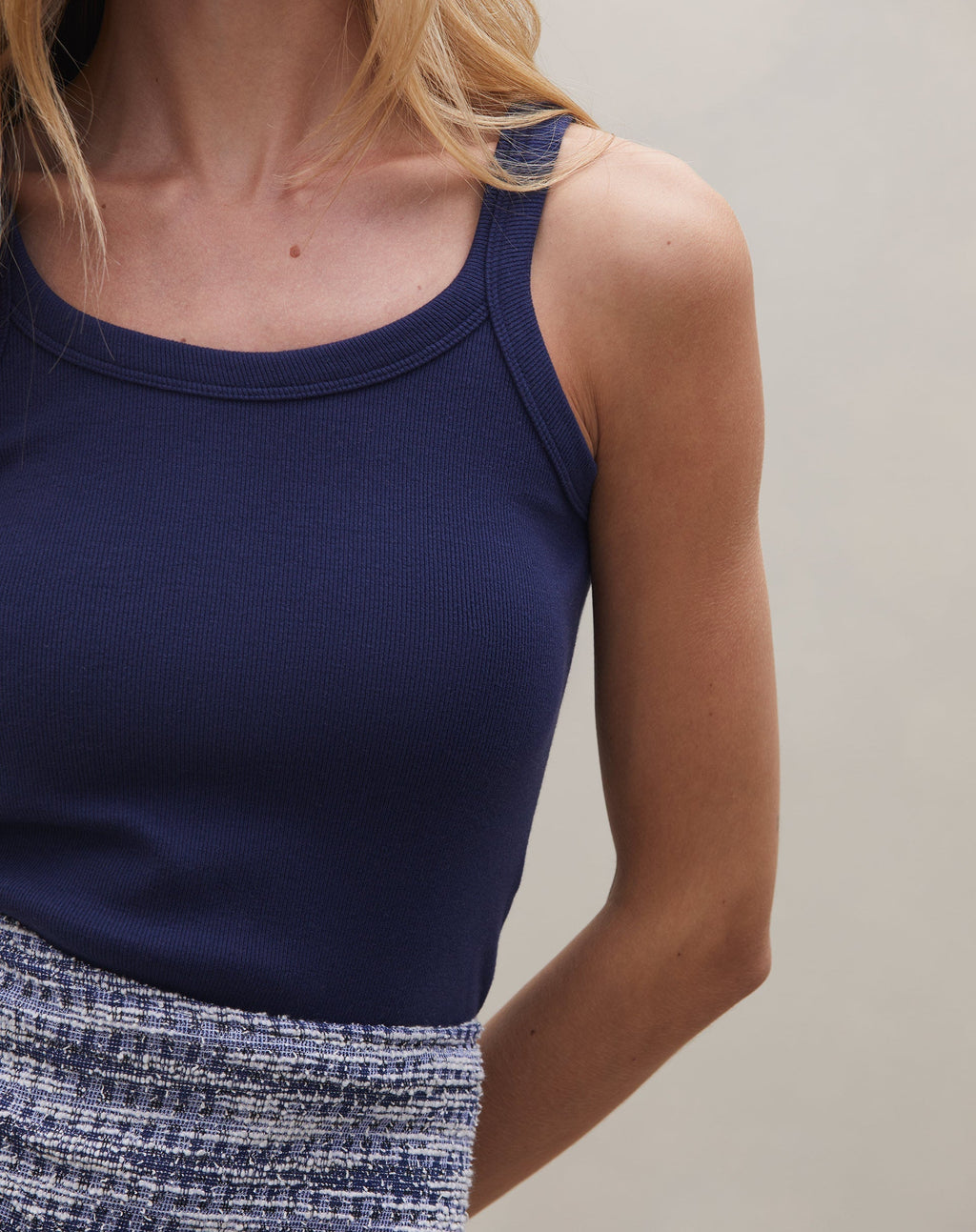 A Regata de Malha Canelada é um item versátil e essencial para seu closet. Com design minimalista e alças finas, é perfeita para um look casual e confortável nos dias quentes.
