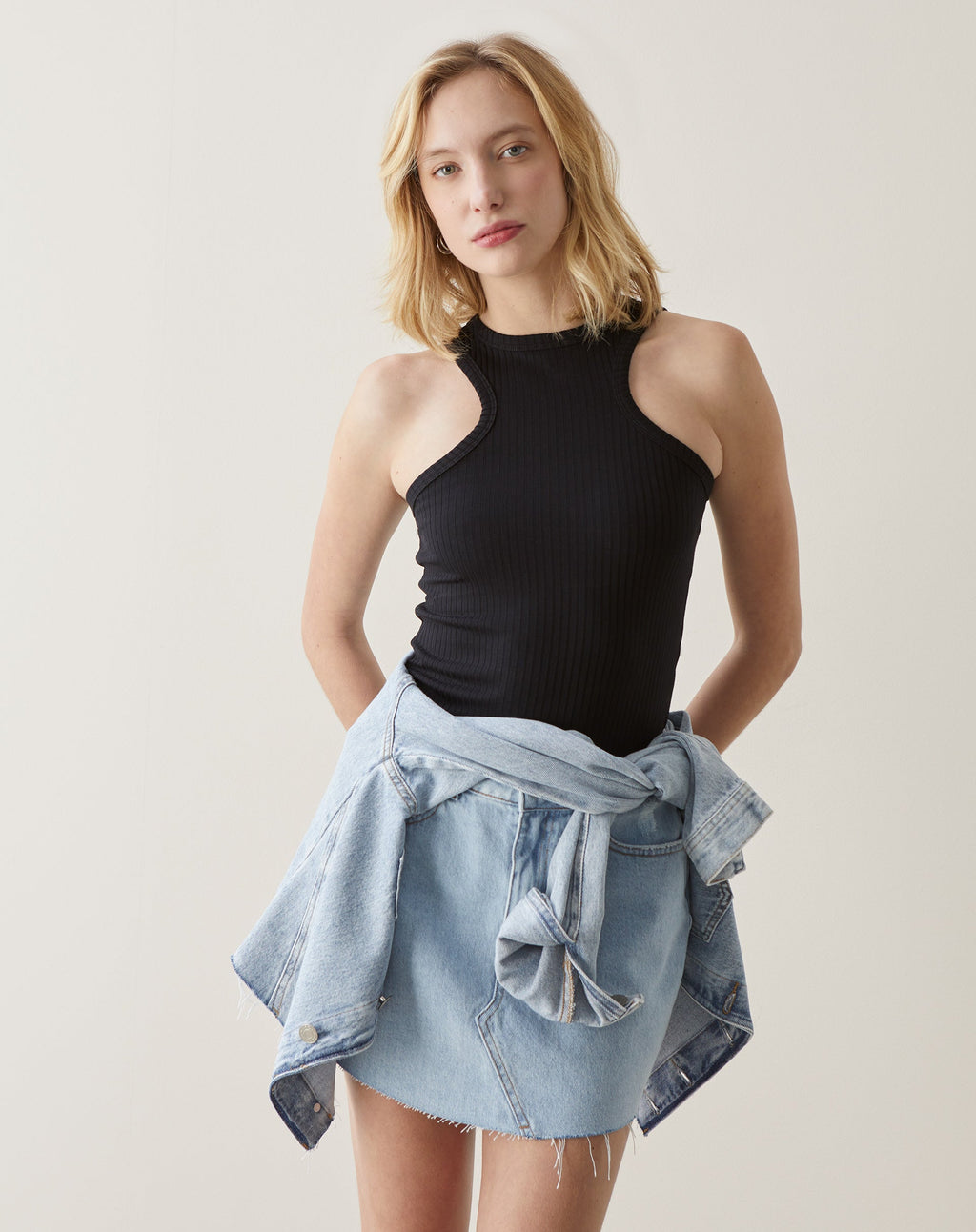 Regata de malha com halter neck nadador, perfeita para um look casual e confortável. Destaque para o design ajustado e a gola careca, ideal para dias quentes.