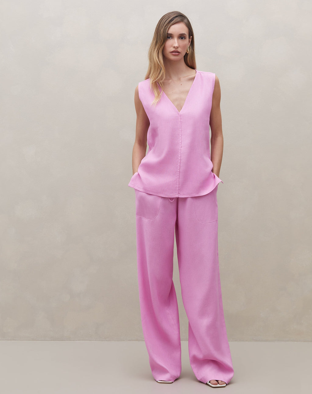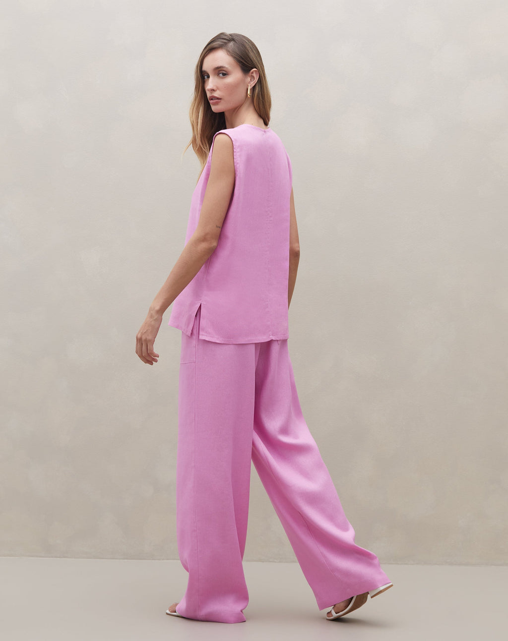 Uma peça versátil e elegante, perfeita para o trabalho ou momentos casuais. O design em linho garante frescor e sofisticação, ideal para dias quentes.