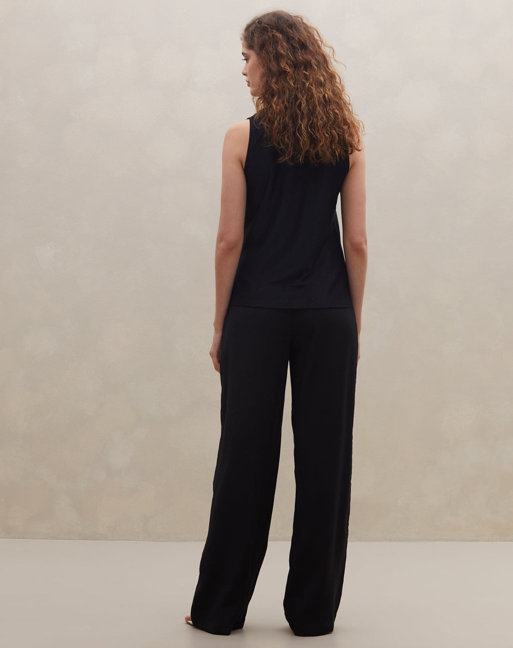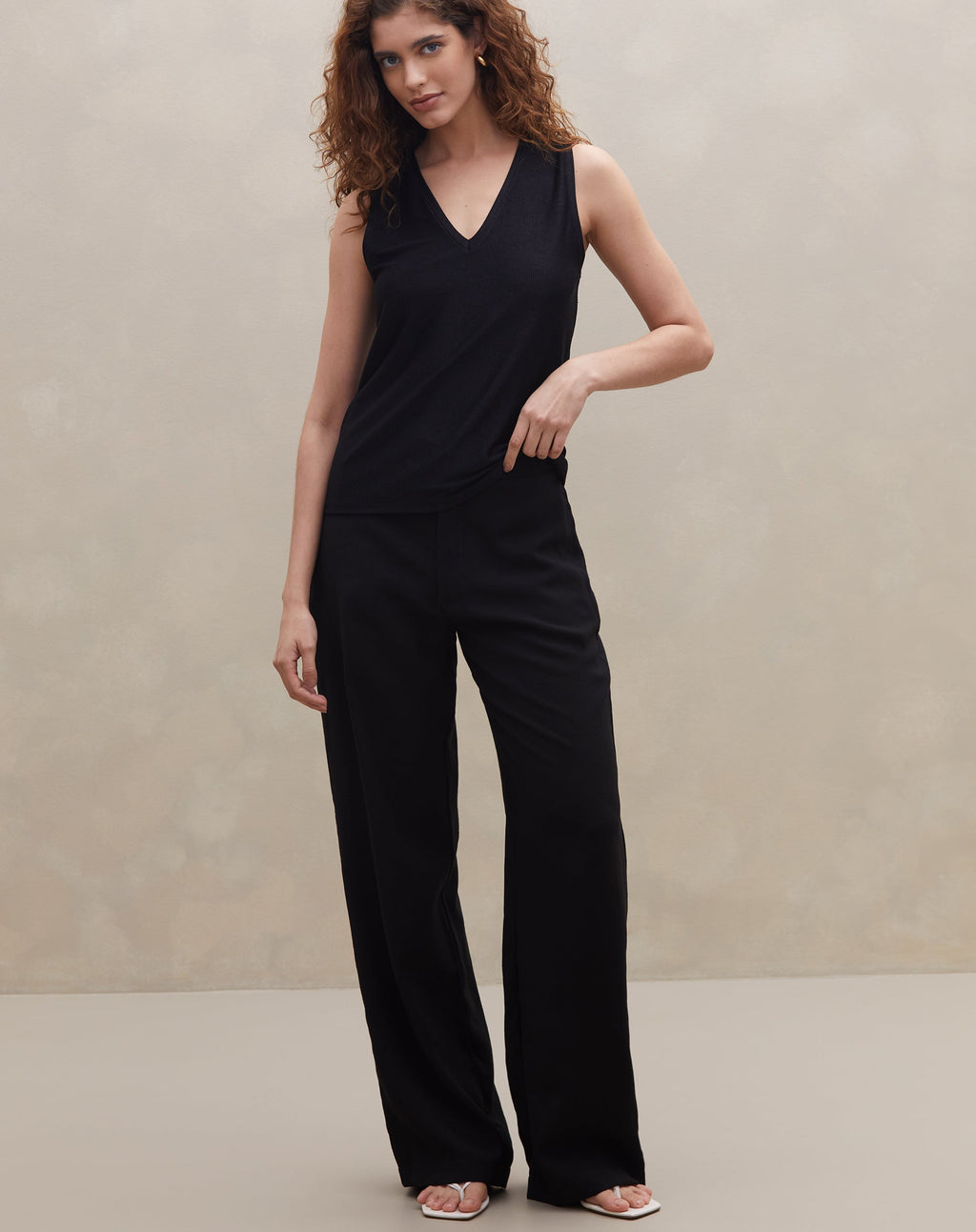 Uma peça básica e confortável, perfeita para ocasiões casuais. A regata possui decote V e alças largas, garantindo um look elegante e versátil.