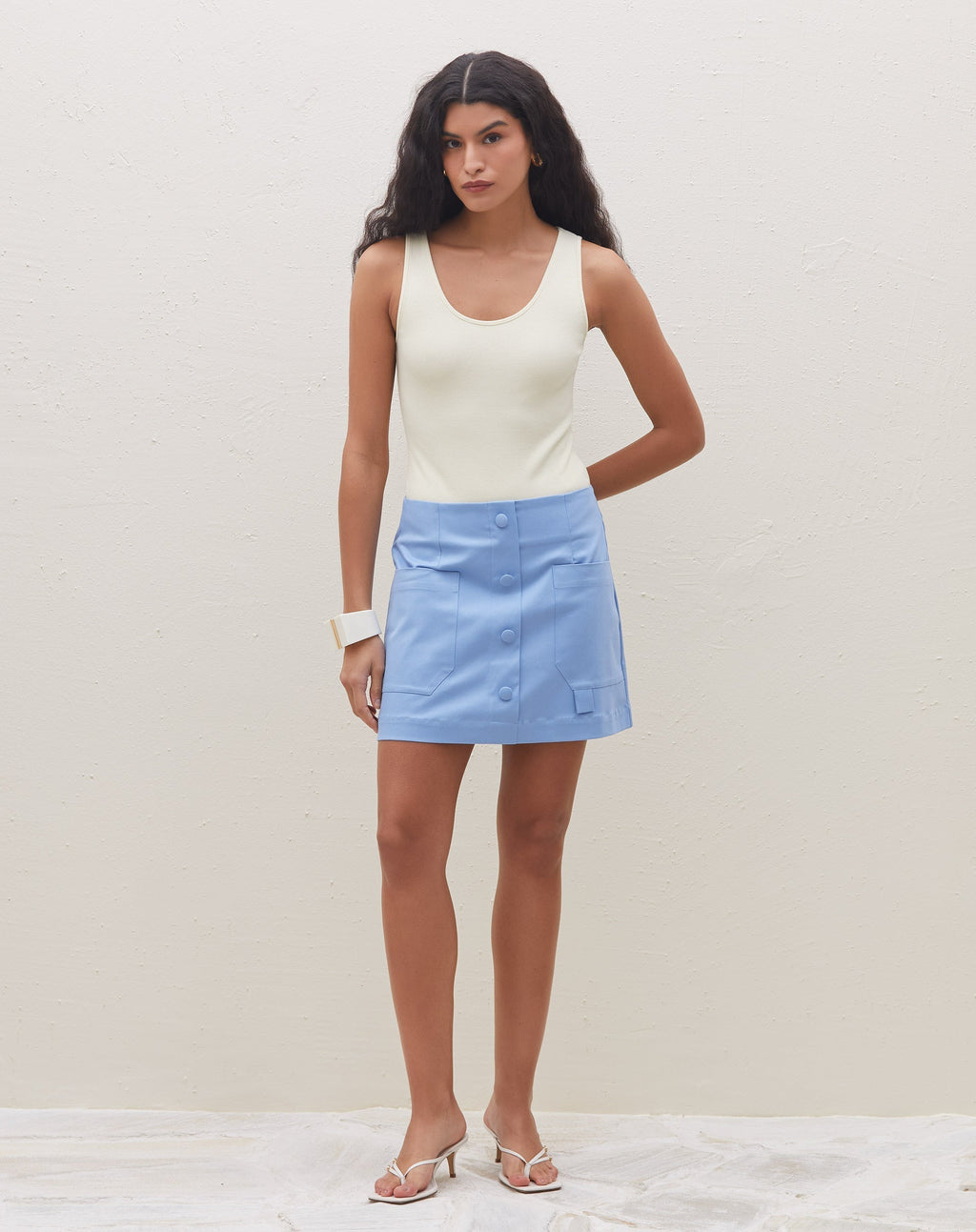 Uma peça versátil e elegante para mulheres sofisticadas. A saia com vista de botões alfaiataria é perfeita para ocasiões casuais ou noturnas, garantindo um look elevado e moderno.