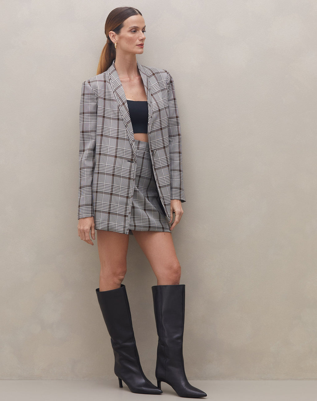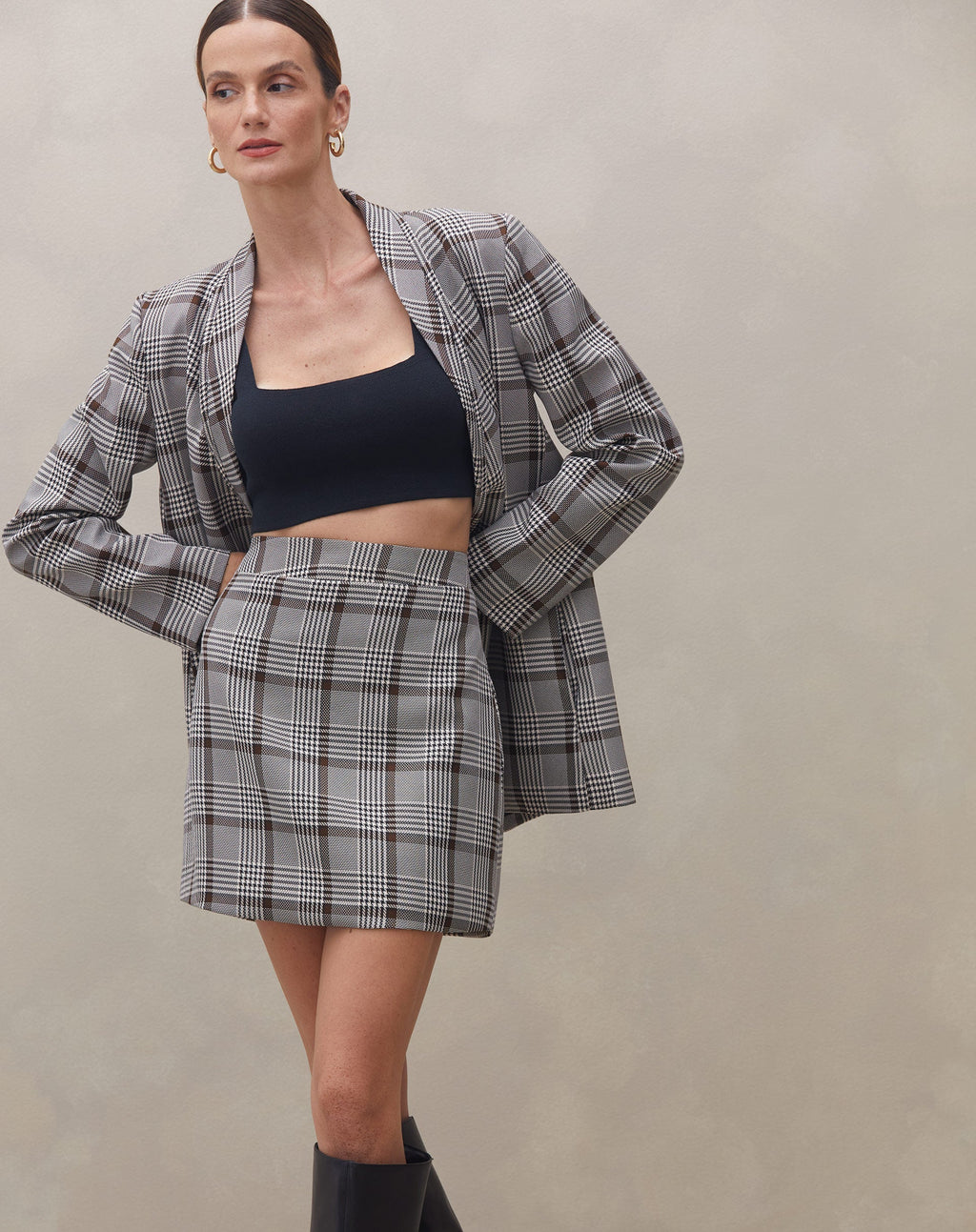 Saia curta perfeita para o trabalho, com design clássico e statement. Ideal para um look urbano e sofisticado. Versátil e atemporal, te acompanha em várias ocasiões.