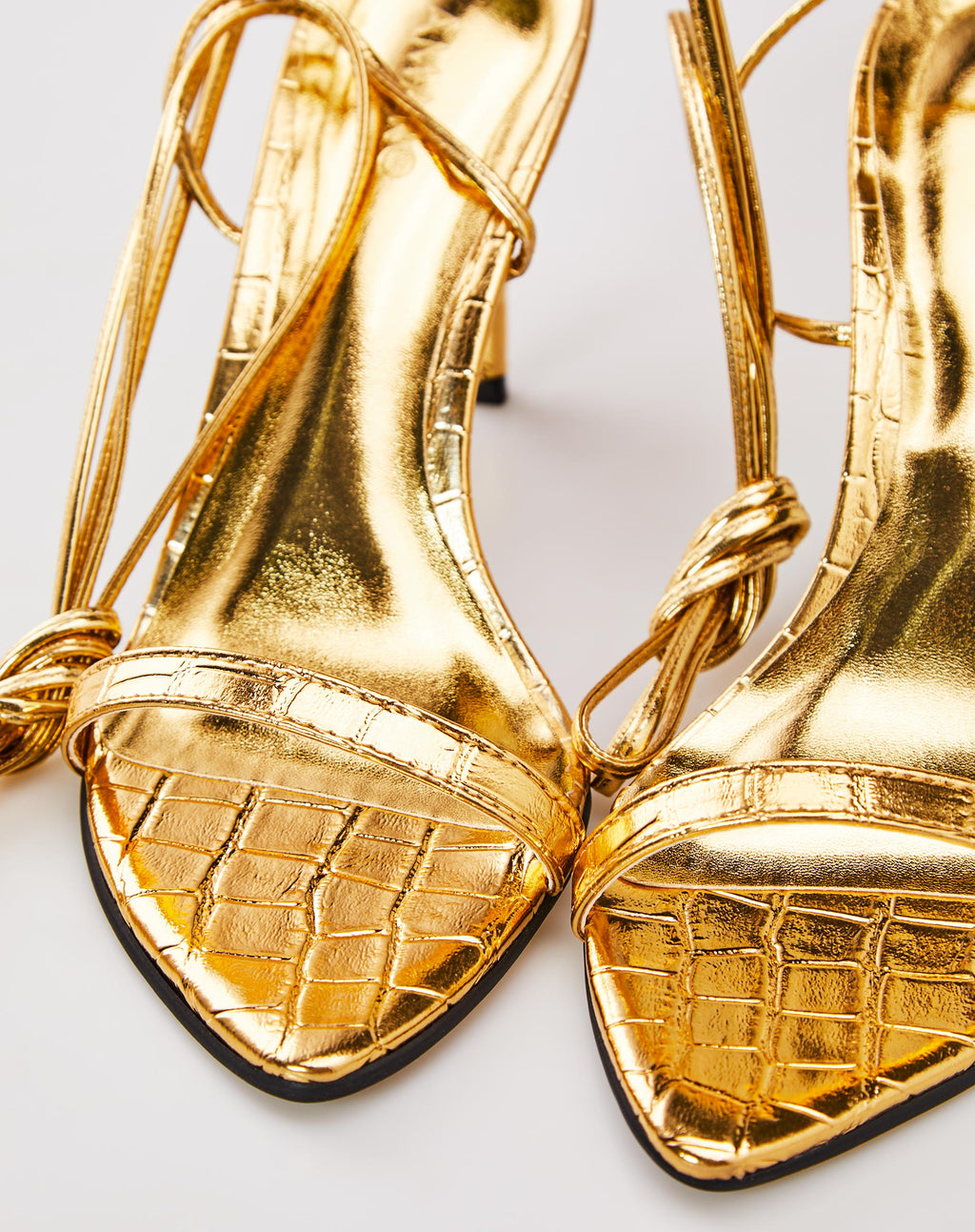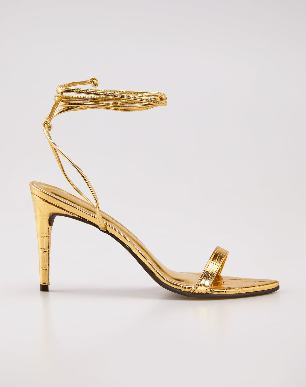 SANDÁLIA BICO FOLHA DE AMARRAÇÃO é a peça que faltava para completar o seu look. Possui calcanhar semi aberto, tiras finas, salto agulha e amarração no tornozelo.