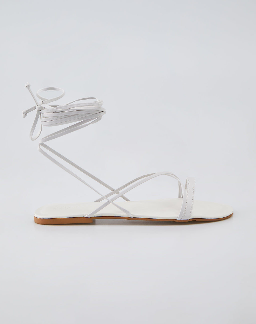 SANDÁLIA RASTEIRA COM AMARRAÇÃO COMPRIDA é a prova de que sapatos incríveis te levam a lugares incríveis. Possui calcanhar semi aberto, tiras finas e sola flat.