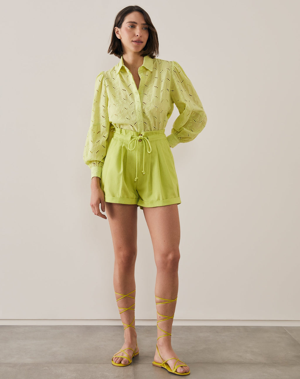 Sandália Rasteira com Amarração Comprida - Verde Lima