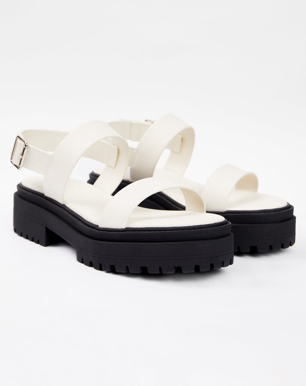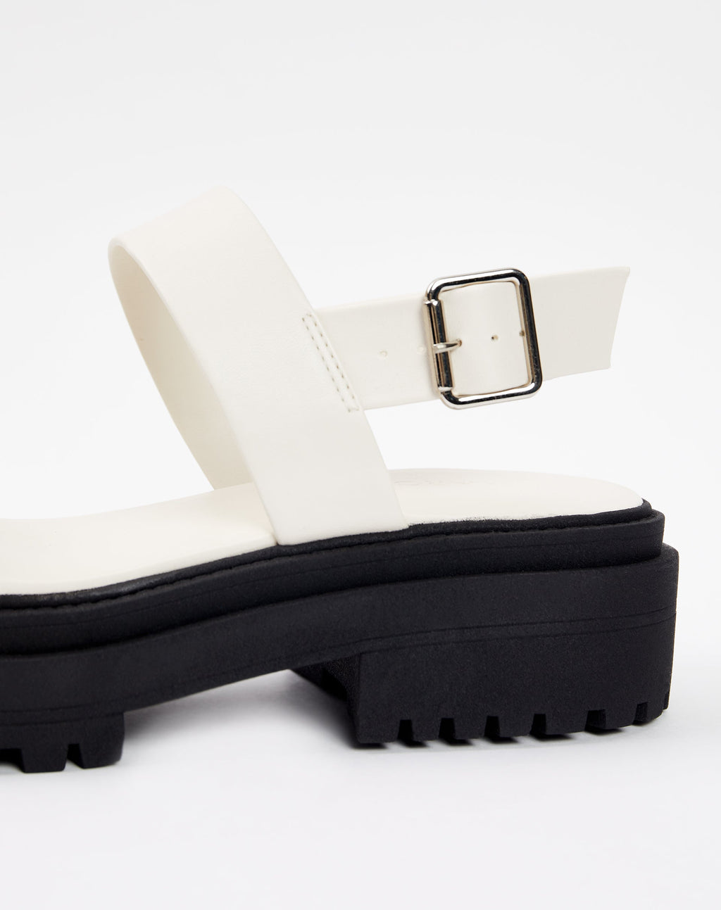 SANDÁLIA TRATORADA DUAS TIRAS COM FIVELA é a tendência que pode ficar incrível nos looks casuais. Composta por sola chunky, slingback e bico redondo.