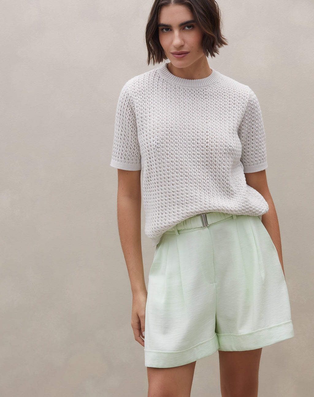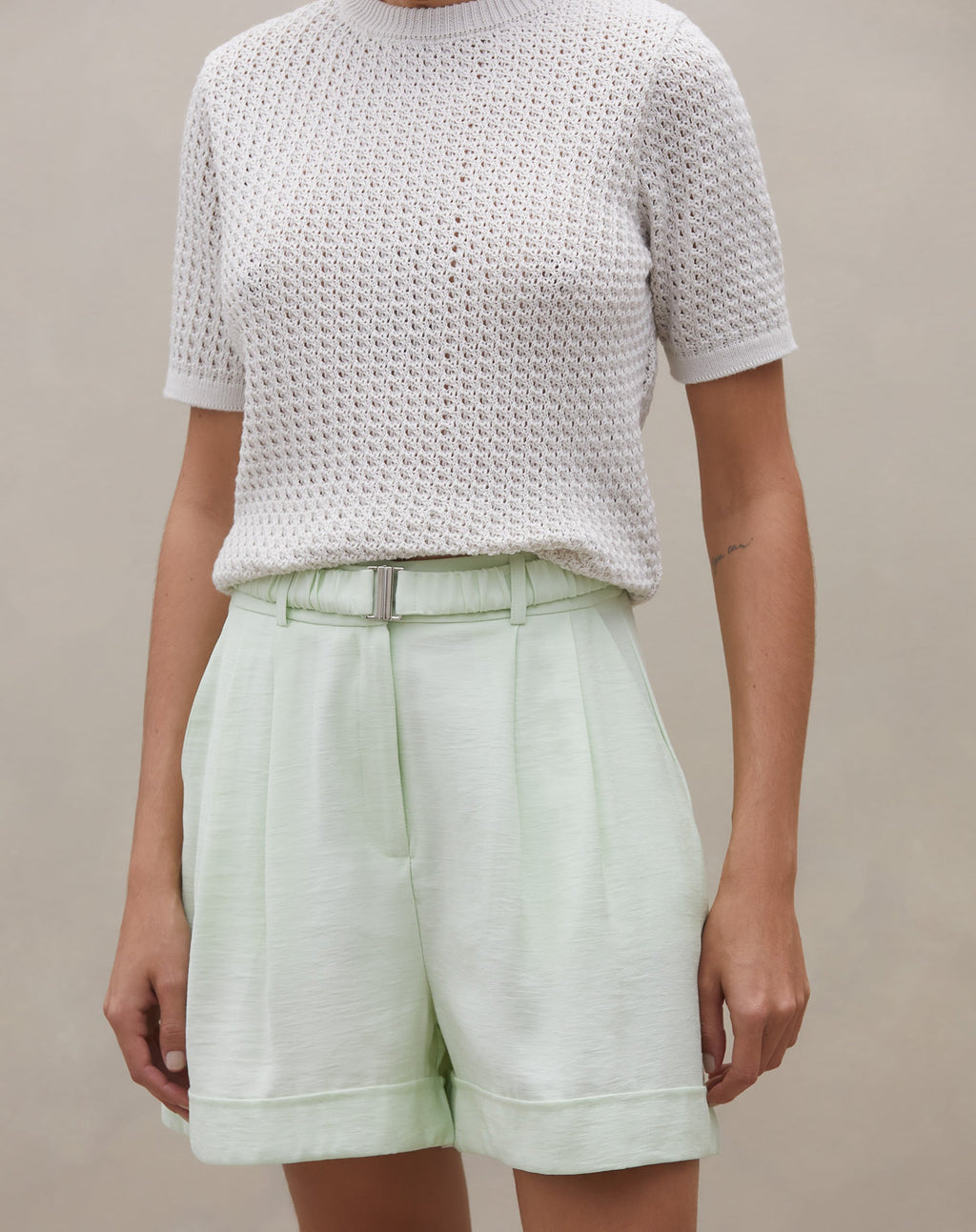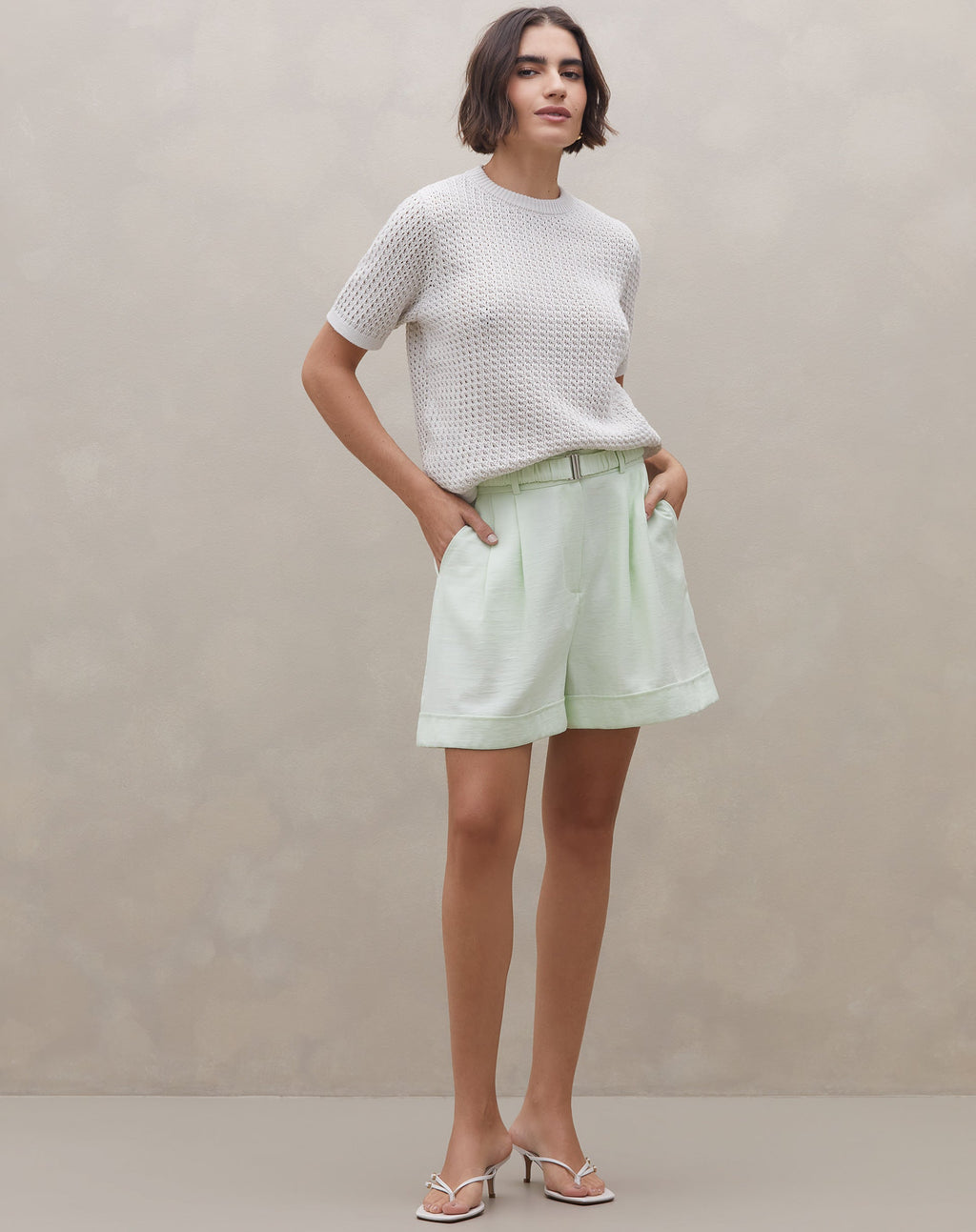 Um item versátil e elegante para seu closet. O Short Evasê com Cinto é perfeito para um look casual chic.